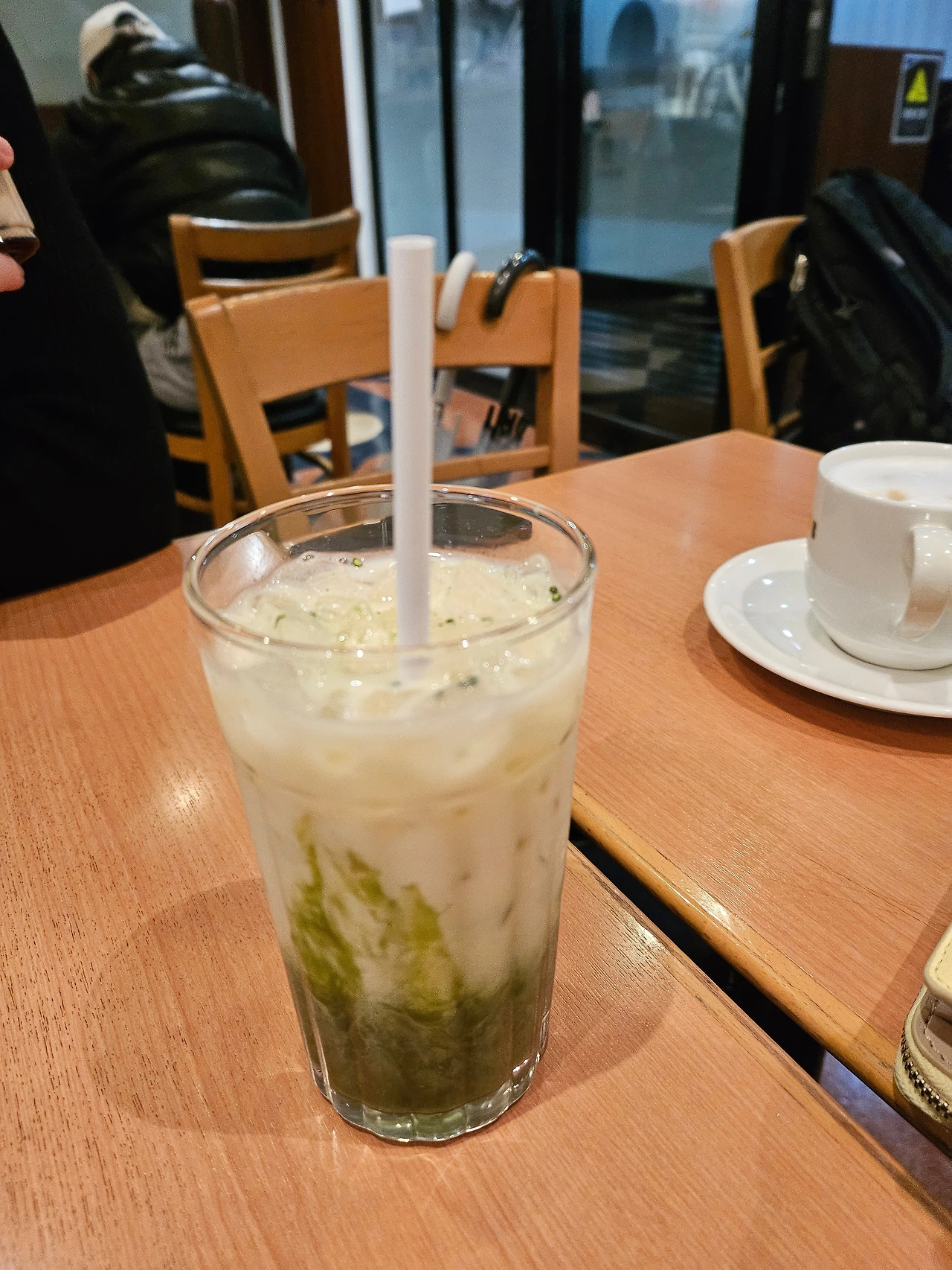 미국의 체인점. 몰랐는데 우리나라에도 점포가 있다고 한다. 달달한 말차라떼다. 콘센트가 있는 곳이 많아 '카공족'들에게 인기가 많은 느낌이다. 조금 더 고급진 도토루의 느낌. 일본에 있는 카페 체인점들의 특징인지 모르겠지만 좌석과 좌석 사이의 거리가 몹시 좁다.
