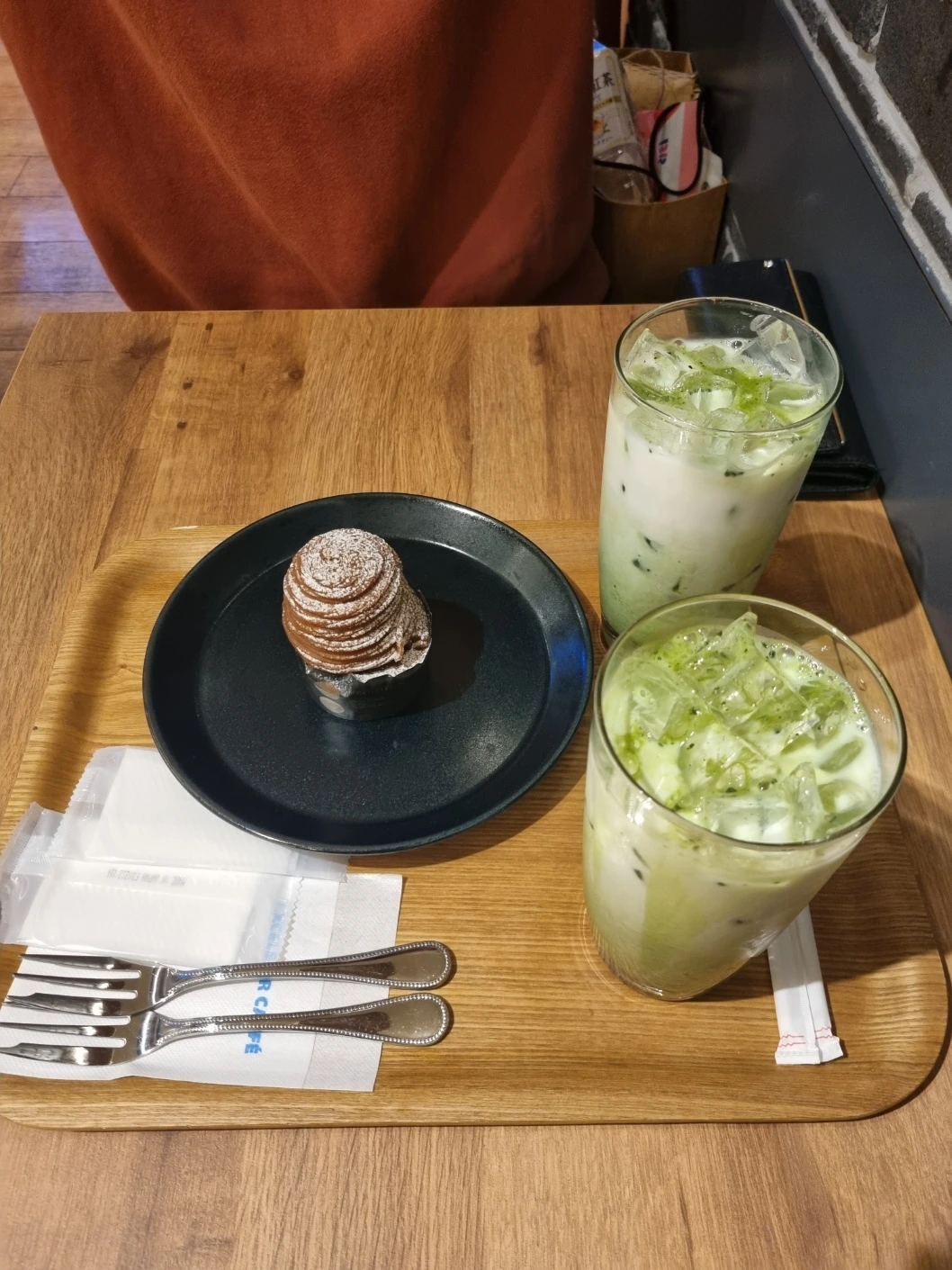 점포가 전국적으로 많고, 심지어 해외 전개도 활발히 하고 있는 말차 전문 카페. 말차 관련 음료, 디저트가 아주 많다. 말차라떼 하나를 이토록 섬세히 구분해놓았을까 싶다. 모찌 같은 떡을 말차라떼에 넣어주는 옵션도 있다. 말차라떼의 당도는 딱 좋다.