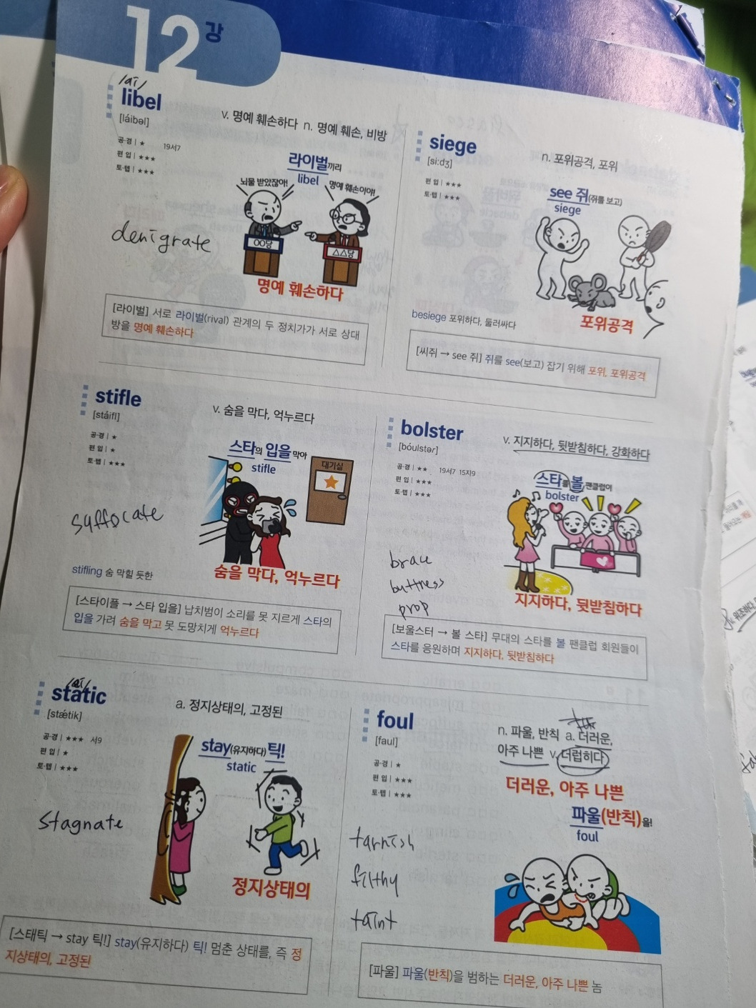 그래서 회독할 때마다 옆에 비슷한 의미의 단어들을 기억나는 대로 메모해 두었다.