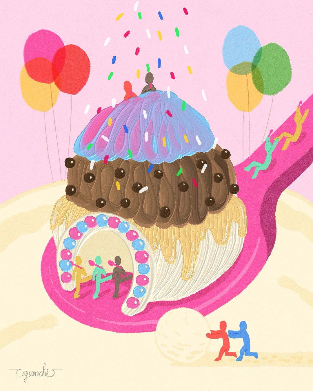 분홍색 작은 숟가락으로 가득 떠먹으면 입안이 파스텔빛으로 물들었다.