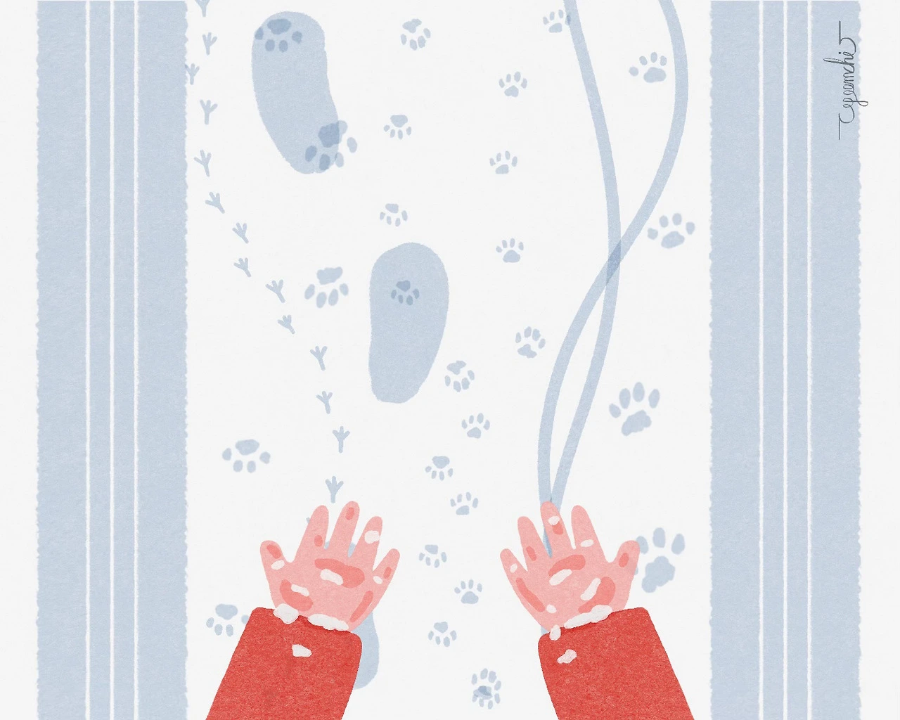 하얀 눈이 내려 쌓인 땅을 어지러운 자국들이 녹이고, 그것이 다시 얼어서