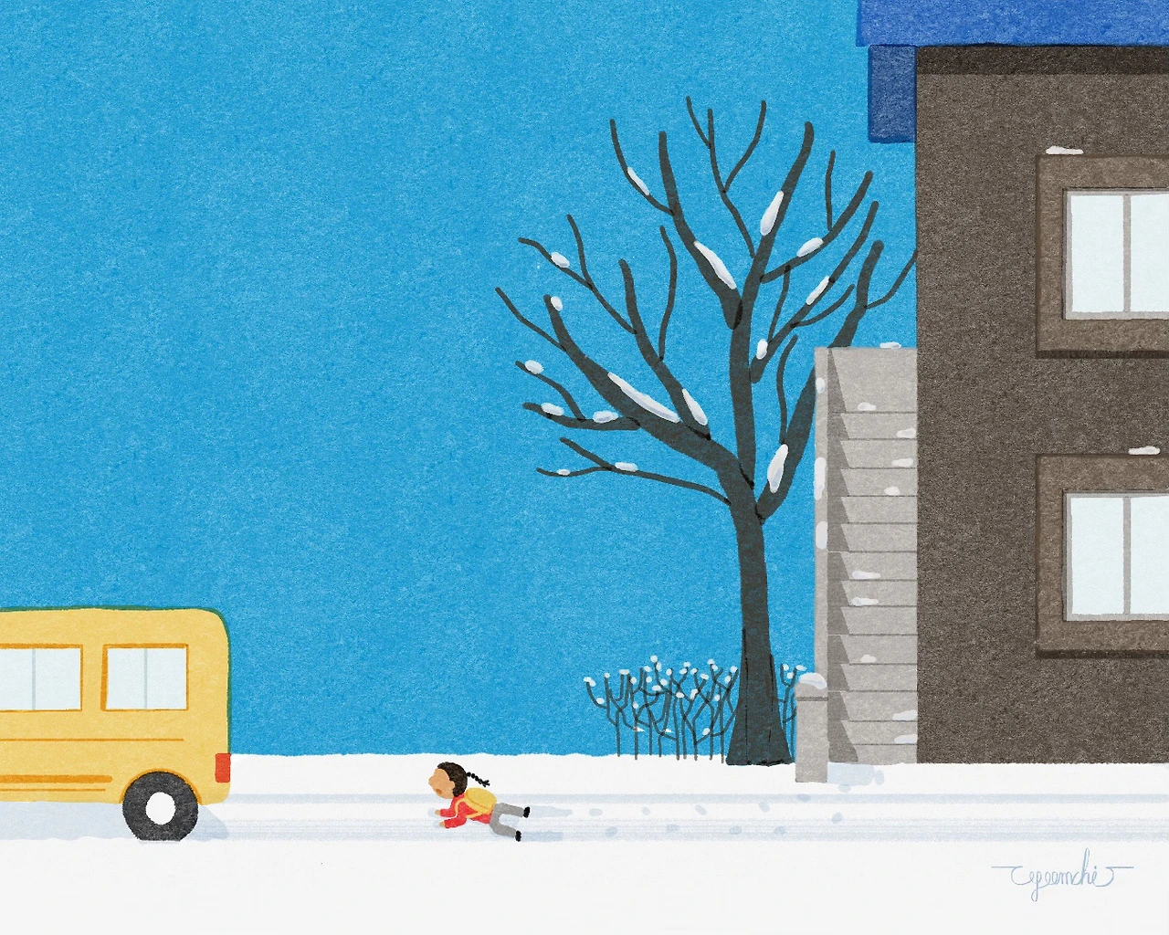 집에서 조금 떨어진 곳에 어린이집 차가 멈추어 있었다.