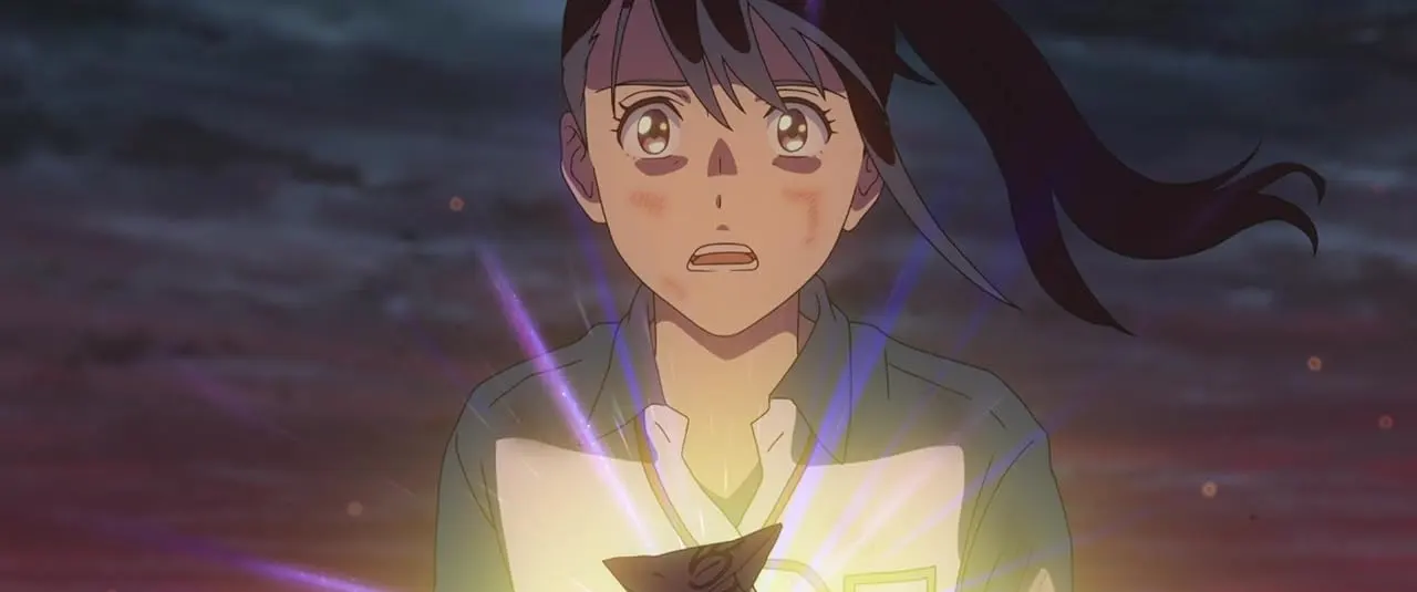 <스즈메의 문단속>은 큐슈의 고등학생 스즈메(하라 나노카)가 재앙이 현실로 넘어오는 문을 볼 수 있는 소타(마츠무라 호쿠토)와 함께 떠나는 문단속 여행기다. 이처럼 영화는 운석이 마을 위로 떨어지는 <너의 이름은.>이나, 빗물이 도시를 삼키는 <날씨의 아이>와 달리 재난의 '진앙지'로 달려가 전력으로 문을 닫겠다는 실천적 태도를 취한다. 그 과정에서 상세히 묘사된 지진의 양상은 트라우마를 겪는 재난 피해자에 대한 미흡한 고려로 읽히고 치유와 위로라는 대의 아래 장애물 없이 상승하기만 하는 남녀 간의 멜로는 세카이계 장르를 고민 없이 인용한 것처럼 보인다. 감독인 신카이 마코토는 감정의 힘을 맹신하는 듯한 어리숙함을 이번에도 모른 척한다. 이처럼 영화는 군데군데 흠이 선명하지만 그럼에도 빈틈을 애써 메우려고도 하지 않는다.