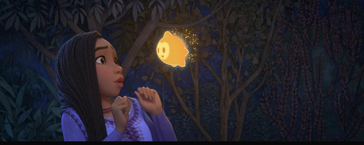 권선징악으로 이어지는 동화가 그렇듯 <위시>의 이야기는 예상 가능한 범위에서 흘러간다. 그리고 이야기 사이사이를 채우는 건 지극히 '디즈니스러운' 설정이다(아버지를 여읜 당찬 주인공과 사악하고 강력한 마법사, 동화를 읽듯 진행되는 액자식 구성, Happily ever after로 이어지는 결말 등). <위시>의 이야기가 공략하는 지점은 이러한 익숙함에 맞닿아있는 안정감이다. 과거의 유산에만 천착한다는 비판이 예상되는 대목임에도, 영화가 차지하는 기념비적인 위치를 고려할 때 스크린 위로 배어나는 기시감을 섣불리 단점으로 확정 짓는 일에는 신중함이 필요하다. 오히려 관객의 정보 처리를 최소화시키는 이 영화의 드라마트루기는 넉넉한 여유공간 속에서 캐릭터들이 마음껏 활약할 여지를 남긴다. 그러니 제작자의 바람이자 <위시>를 보는 정석적인 관람태도는 늘 그랬듯 사랑주기 마땅한 캐릭터와의 첫 만남을 기대하는 쪽일 테다.