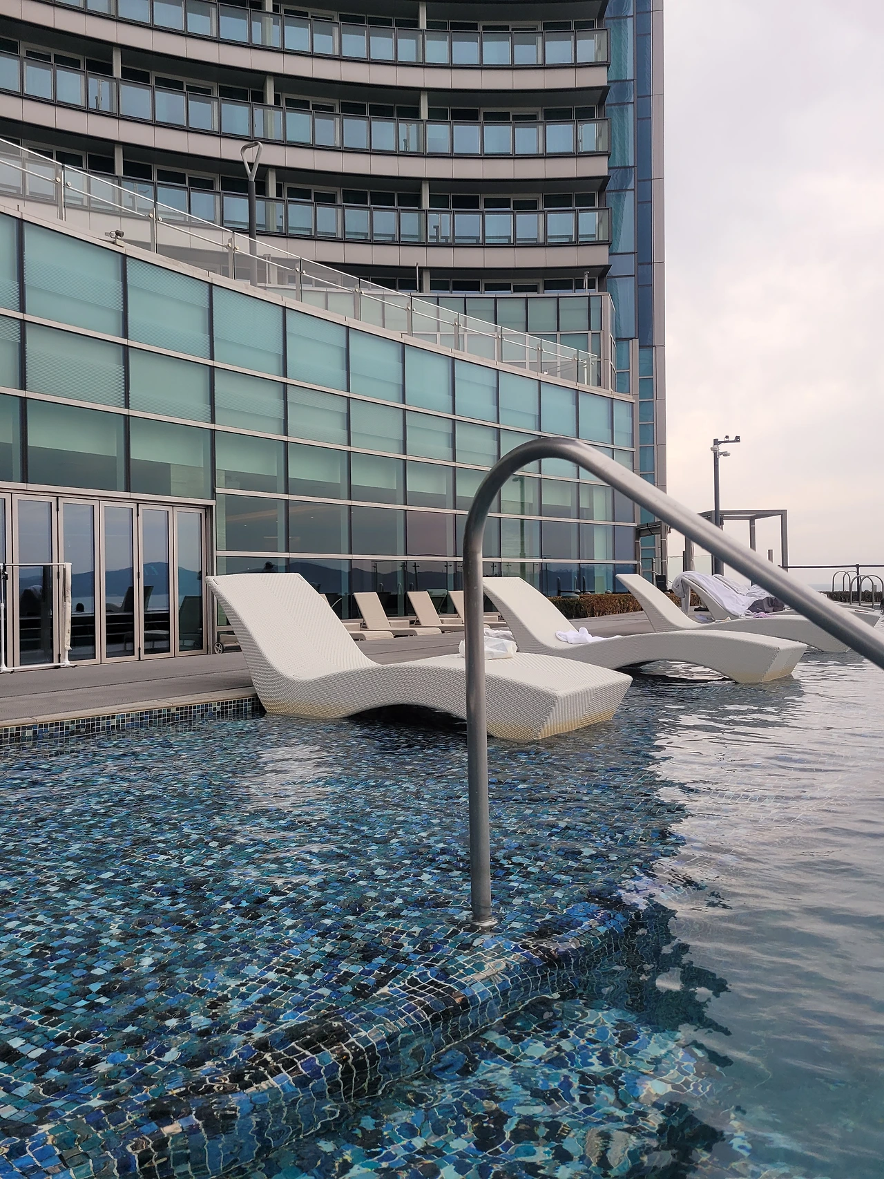 밖을 물끄러미 보니 역시나 요즘 잘 나가는 수영장에는 다 있다는 인피니티 플이 있었다.