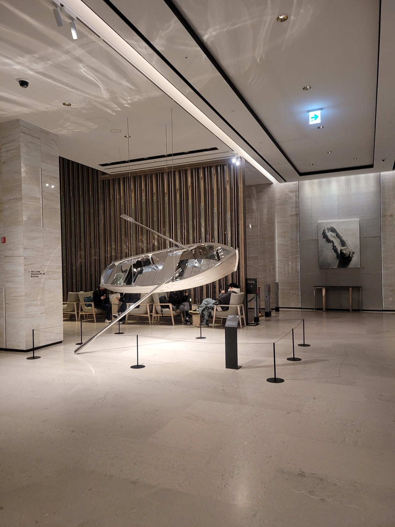 금속 조각배가 홀에 배치되어 있다. 번쩍번쩍이는게 역시 고급스러운 새 건물답다.