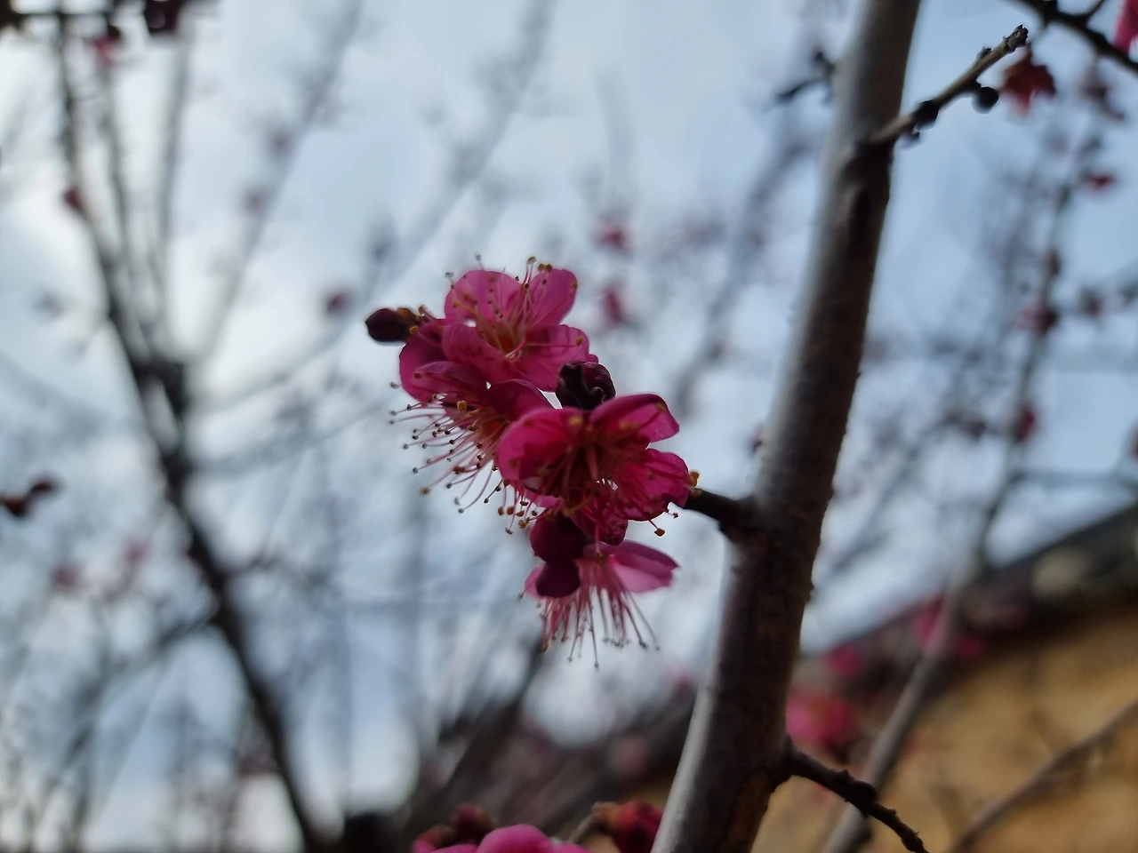 본인은 통도사에 가 있다며 새빨간 홍매화 사진을 한 장 올렸다.