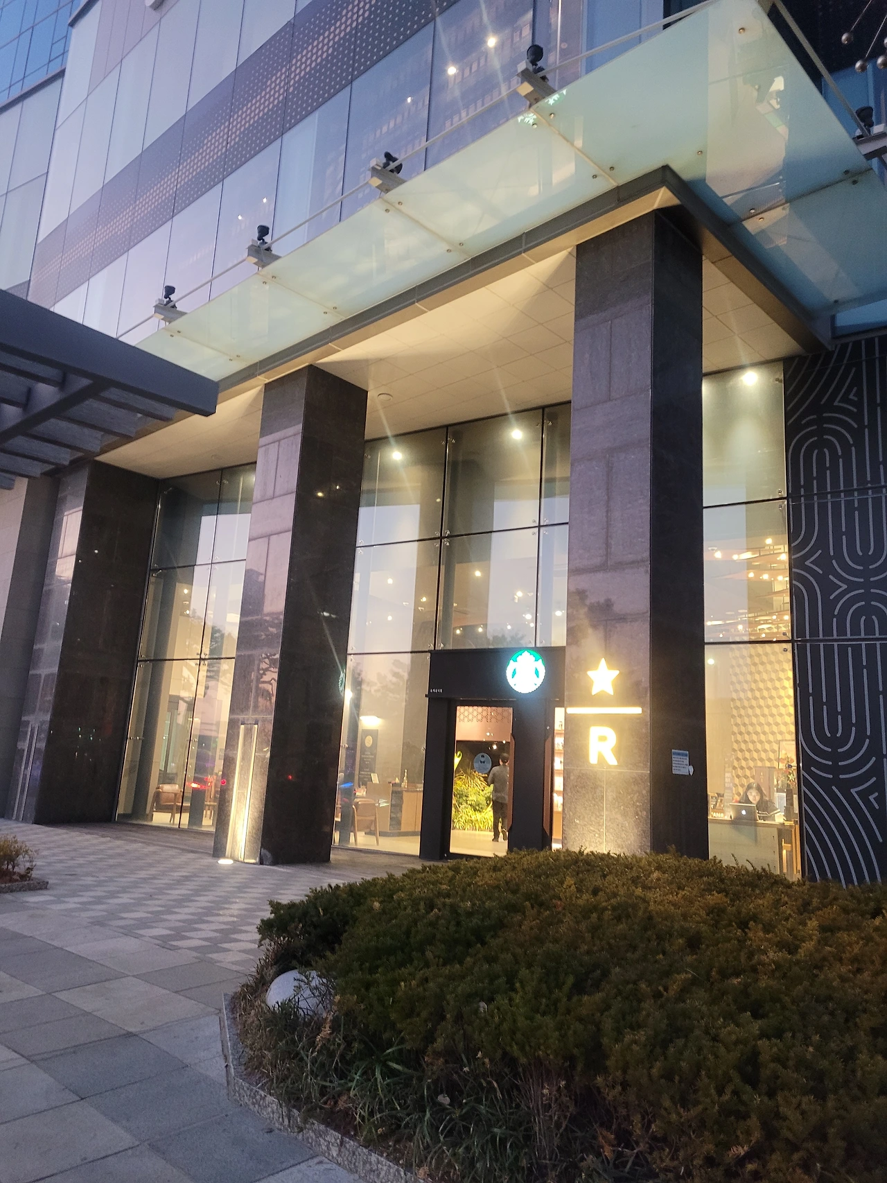 여기까지 왔으니...... 저 매장이었나? 하늘의 별이 땅에 떨어져 카페 간판에 박힌 듯 밝게 빛나고 있다.