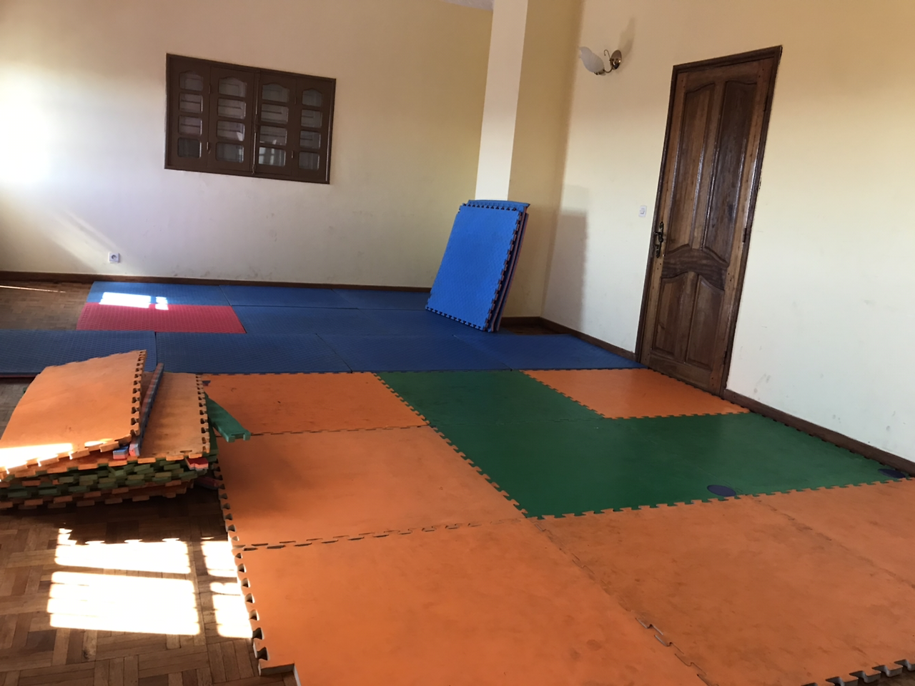 (태권도 매트가 바닥에 깔려있다.)