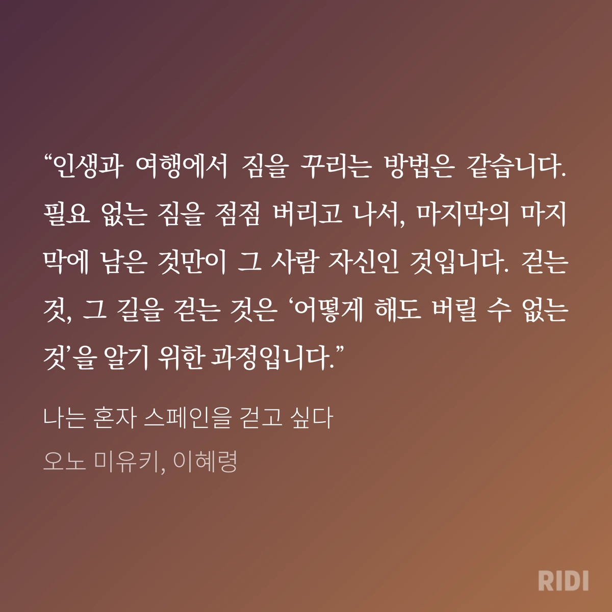 그러다 보니 자연스레 B.C(Before Corona)에 생활을 그리워하며 그때는 이러했는데 추억하다가 전부터 읽어야지 하고 저장만 해두었던 책 '나는 혼자 스페인을 걷고 싶다'(오노 미유키, 이혜령 저)를 읽었다. 책은 스페인의 유명한 순례길, Camino de Santiago(카미노 데 산티아고)를 걷는 에세이와 관련 정보를 소개하고 있어 쉽게 근방 읽힌다.(그 나라의 최근 행보는 싫은 동시에 감정적인 비판을 위한 비판은 피하고 싶다.)