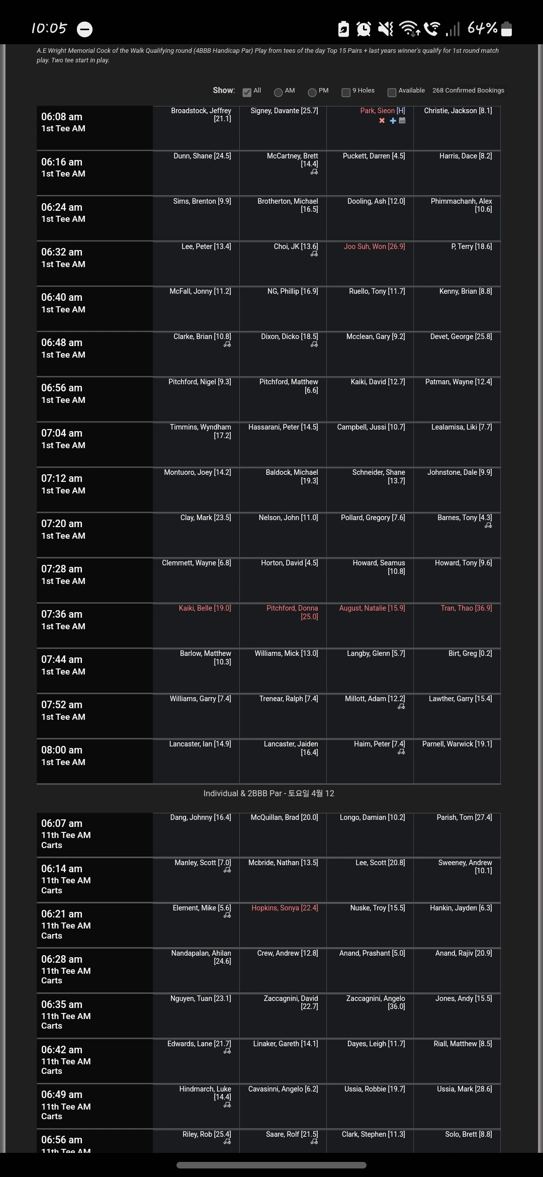 여기서 또 하나 멋진 것은 모든 아마추어가 자기 정식 핸디캡을 가지고 있다는 것.