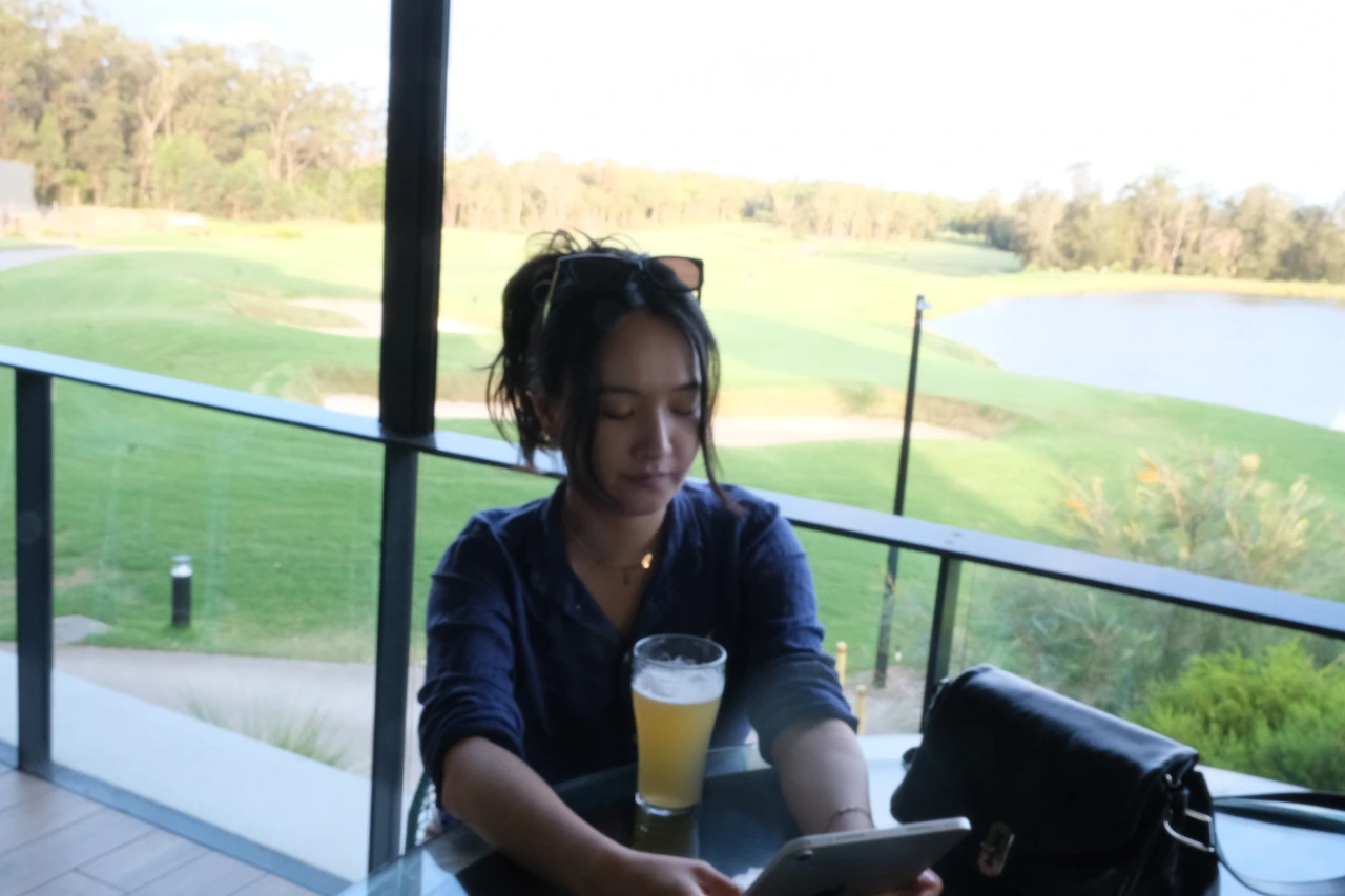 <한국에서보다 더 돈독해져 더 많은 시간을 보내는 언니. 꼭 골프를 시키게 만드리라. 골프장 클럽하우스에서 맥주한잔 하니 기분도 좋아지고 자기도 골프 한번 쳐보고싶어졌다는 우리 언니.