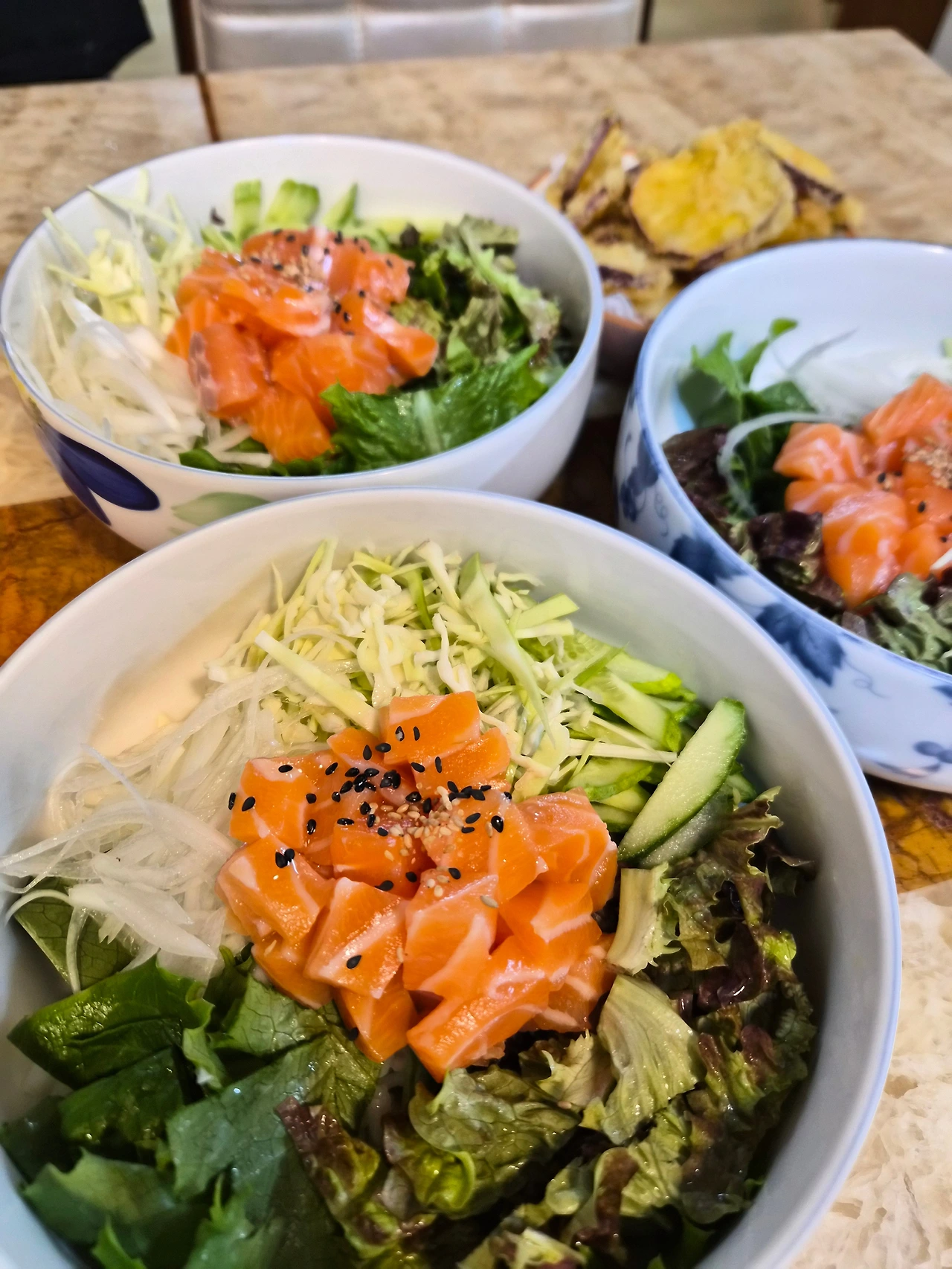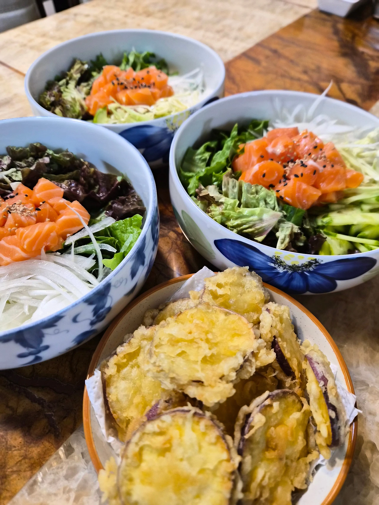 낭랑 18세 조카는 연어회덮밥과 고구마튀김으