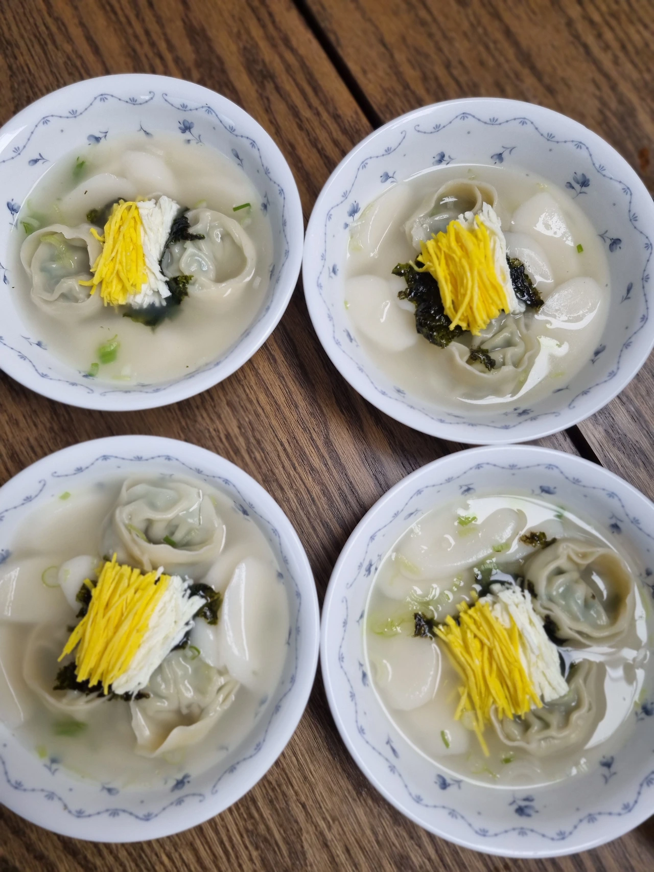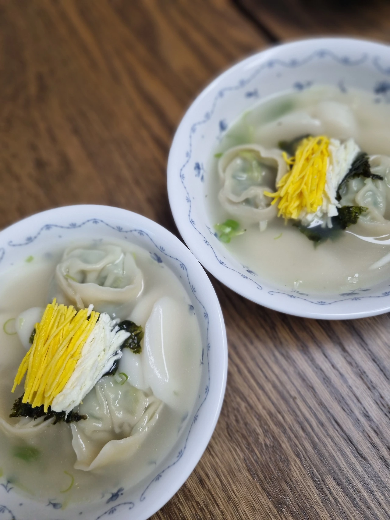 그리고 새해 첫날인 오늘 아침은, 고기 육수에 떡을 넣고 만두를 넣더니, 지단 고명까지 곱게 채 썰어 저렇게 예쁘게 고명을 올렸다.