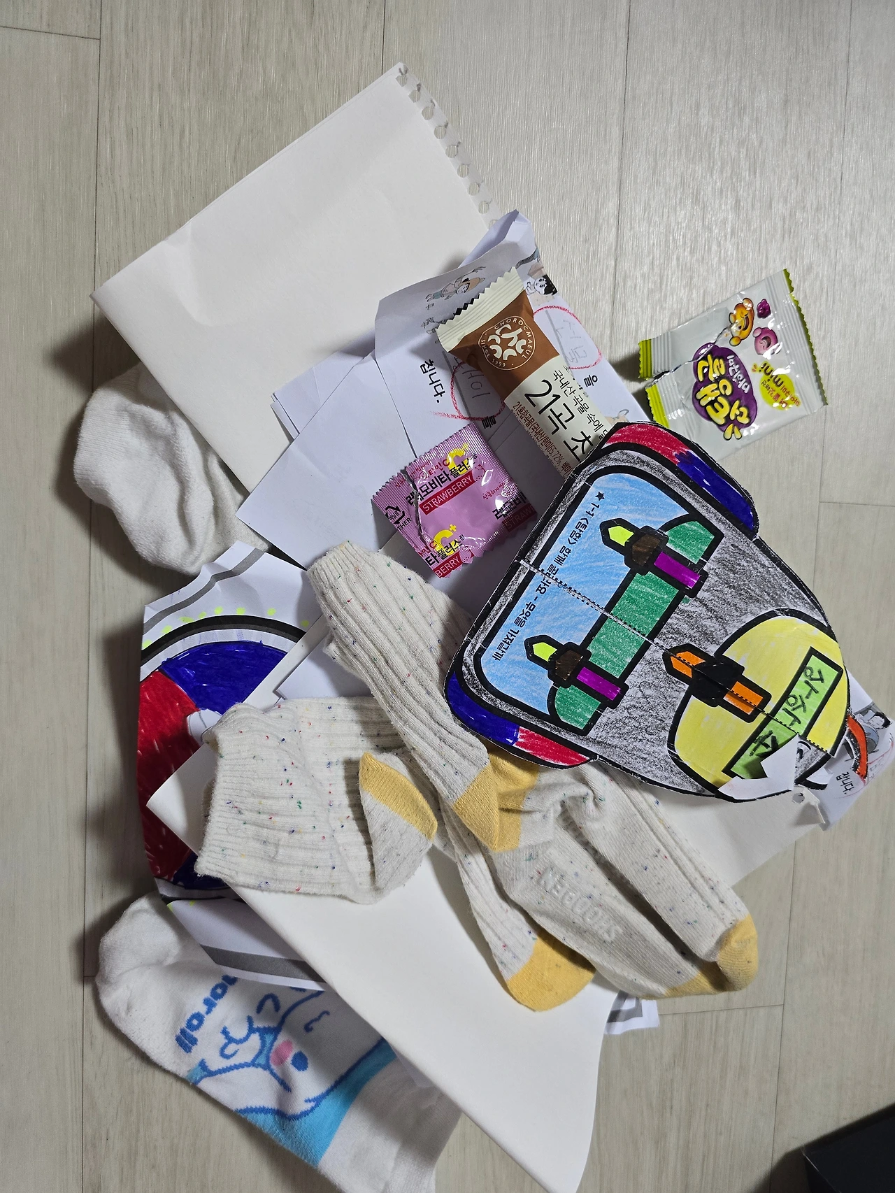 친구한테 받은 건지... 내가 모르는 간식의 흔적들...