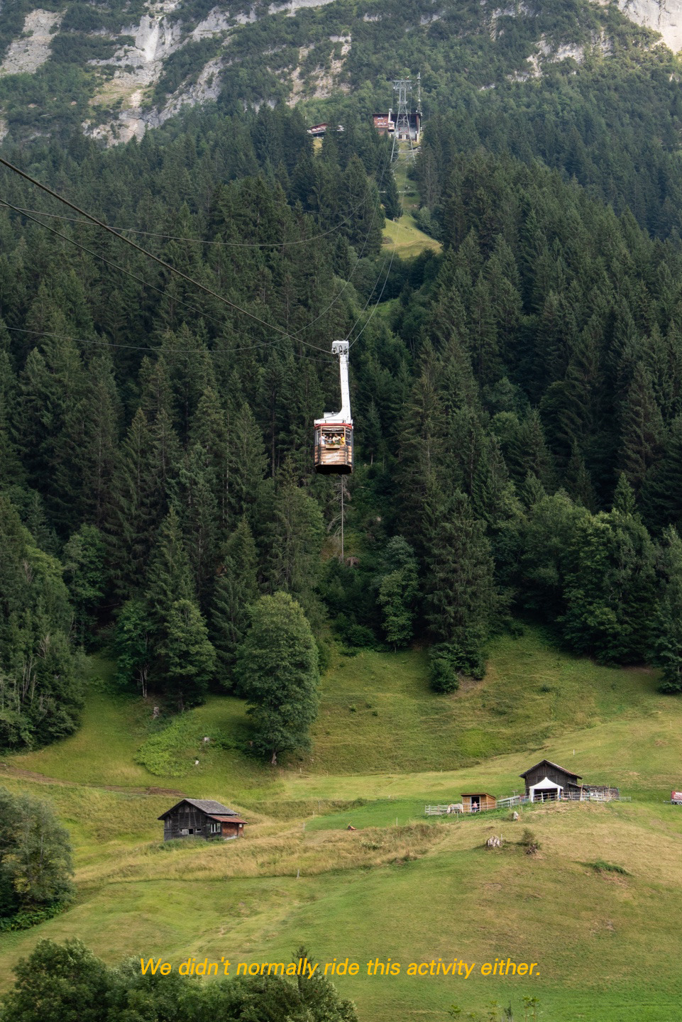 어린 시절 나름 놀이기구는 빼지 않고 타는 편이라 공포증까지는 아닐 거라 생각했는데, 지나고 보니 모두 어릴 때 뭐든 지기 싫어했던 내 승부욕이 공포증을 이겨낸 것 같더라. 지금은 번지점프는 무슨, 대관람차와 곤돌라도 겨우 타는 수준이다. 그린델발트에 도착하고 우리가 원하는 풍경을 보기 위해선 피르스트로 가는 곤돌라가 필수적이었는데, 몇 번이고 멈추고 조금씩 흔들거릴 때마다 사시나무 떨듯이 떨었다. 물론 내 떨림이 곤돌라의 흔들림에 더 큰 파장을 줄까 내가 떠는 수준도 조절해야만 했지만.