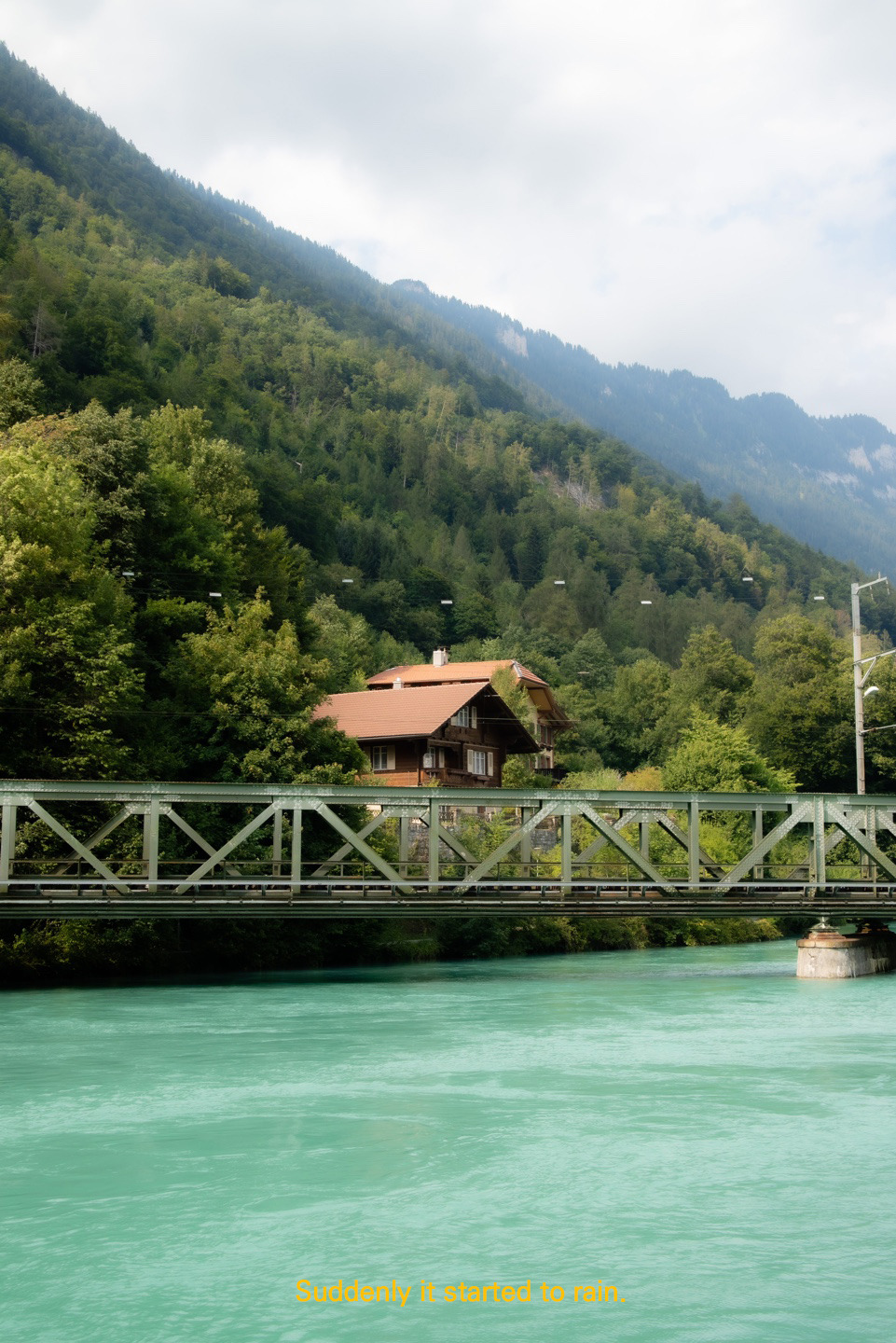 음.. 아니다. 정정하겠다. 우리는 발만 물에 담그고, 갑자기 내린 비를 맞기 시작했다. 괜찮다. 여긴 스위스니까 빗물이 조금은 깨끗하겠지.. 19살에 적은 버킷리스트 중 하나가 '내리는 비를 행복하게 맞으며 걸어 다니기'였으니 이렇게 또 버킷리스트의 하나가 지워진다.