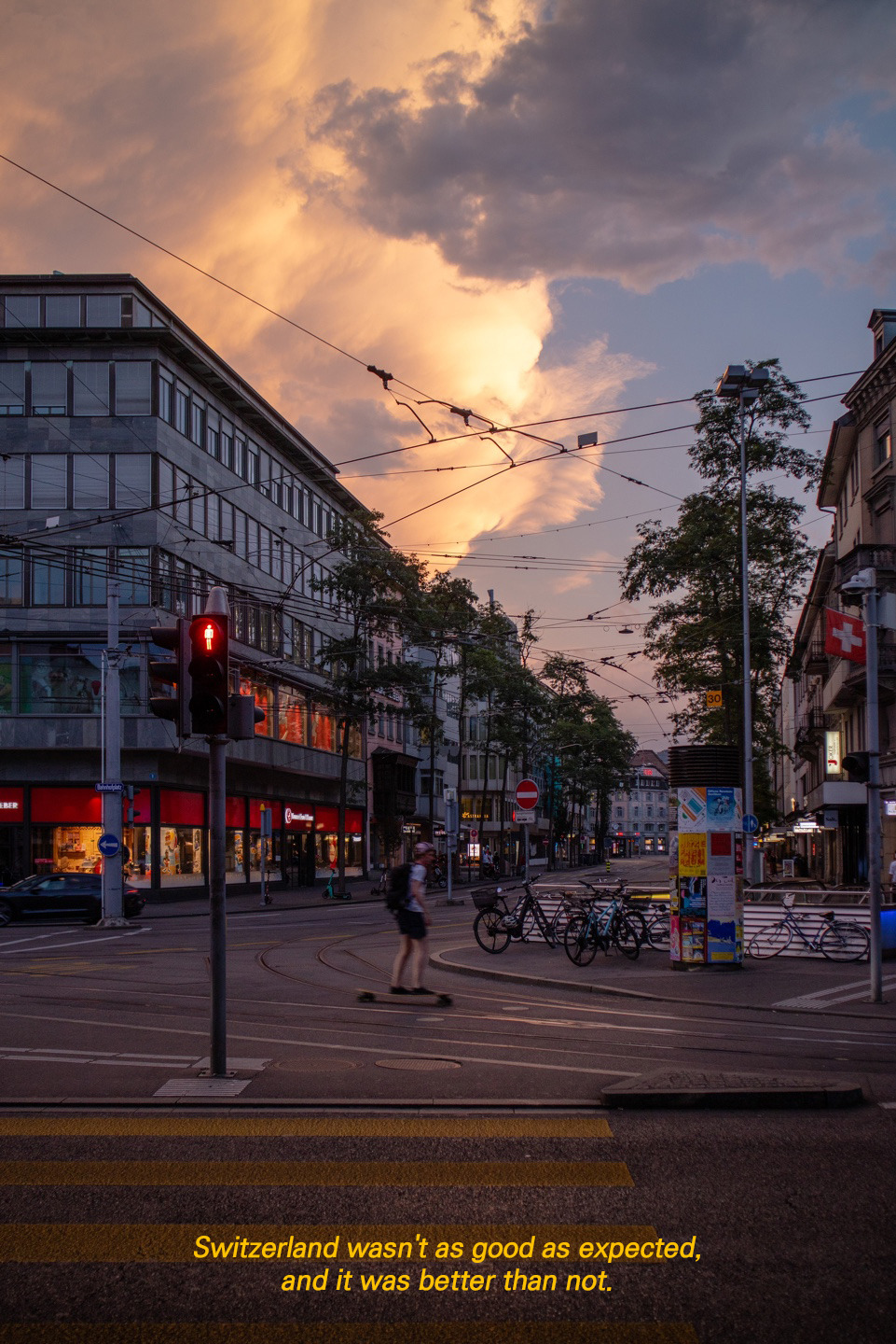 그래도 그 덕에 취리히라는 도시에 대한 거부감은 많이 사라졌던 것 같다. 자료조사도 안 한 내가 이런 말을 조금 어색하지만, 나는 편견이 생기면 그걸 무너뜨리는 게 쉽지가 않다. 취리히는 다른 도시에 비해 어떤 콘텐츠나 멋진 풍경으로 유명세를 가지고 있지 않다 보니, '노잼도시'라고만 생각했는데.. 동생이 보내줬던 사진이 '콘텐츠는 없지만 그럼에도 멋진 도시‘라는 타이틀로 취리히를 찾게 되었던 계기가 되었다.