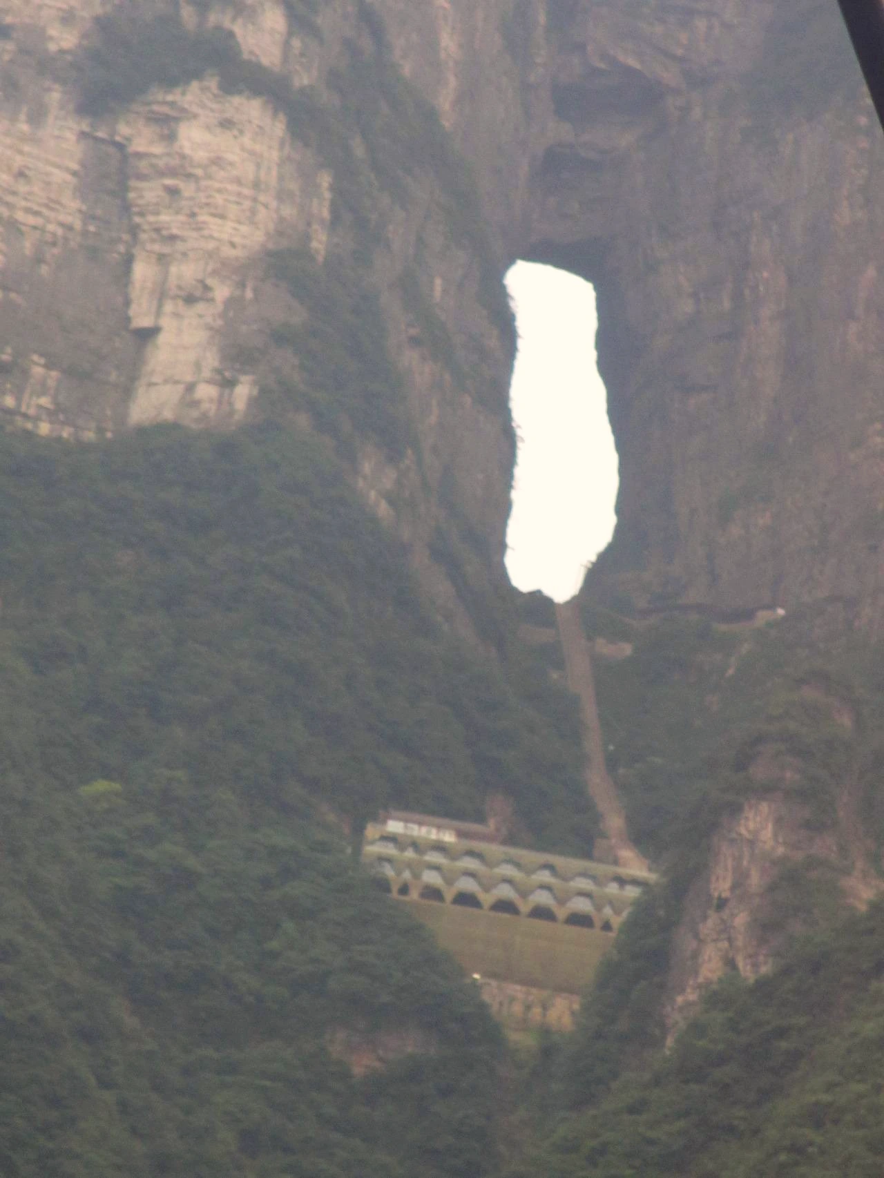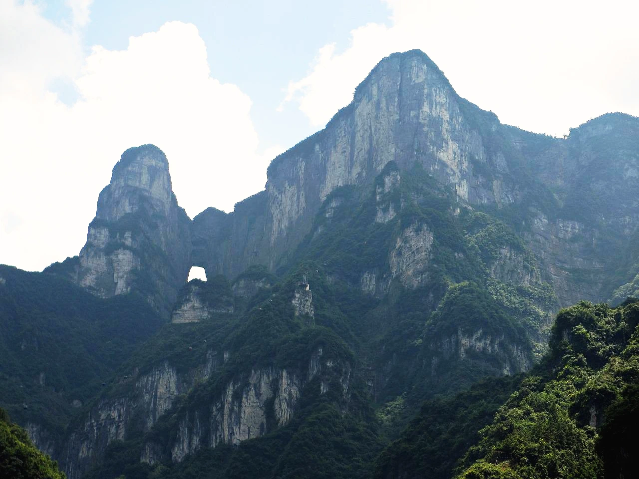 천문산의 모습이다. 사진에 보이는 커다란 구멍에는 비행기도 지나갈 수 있다고 한다.