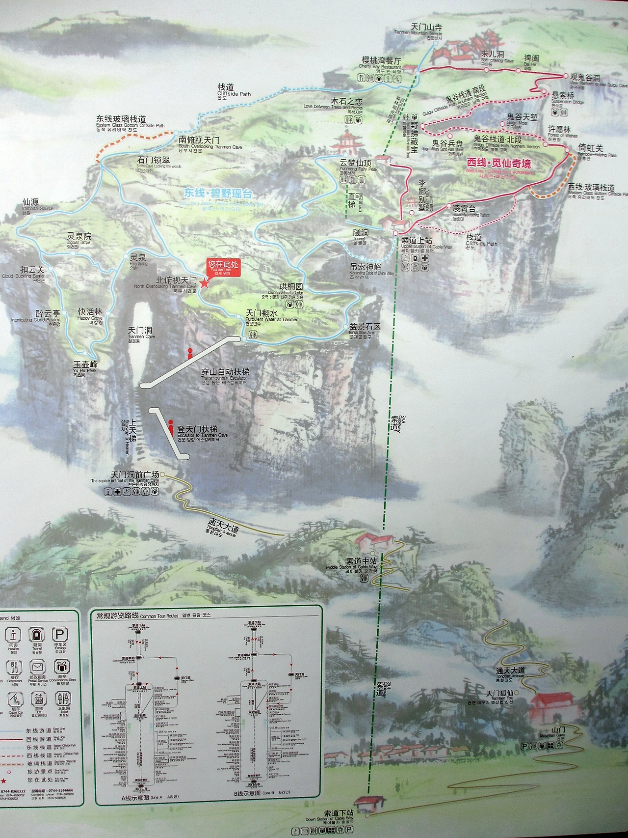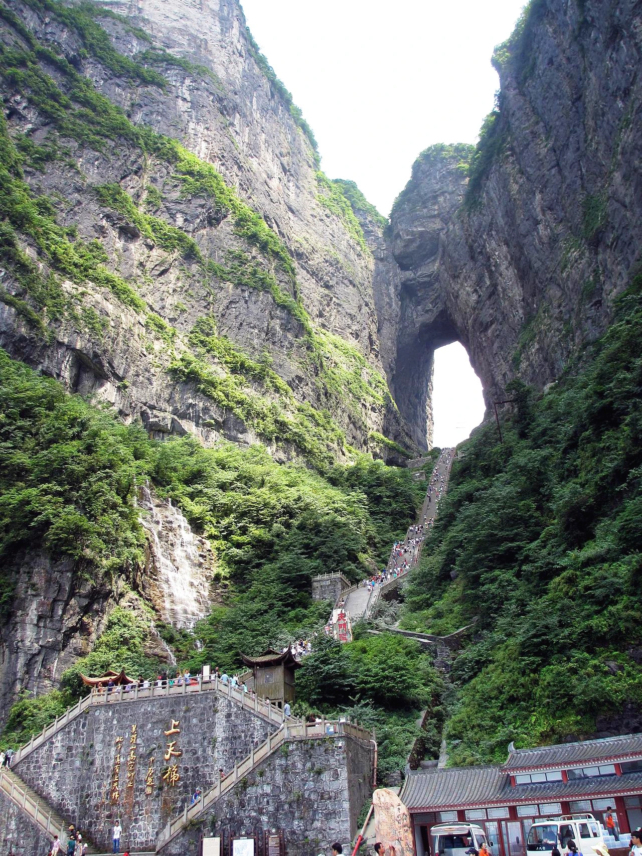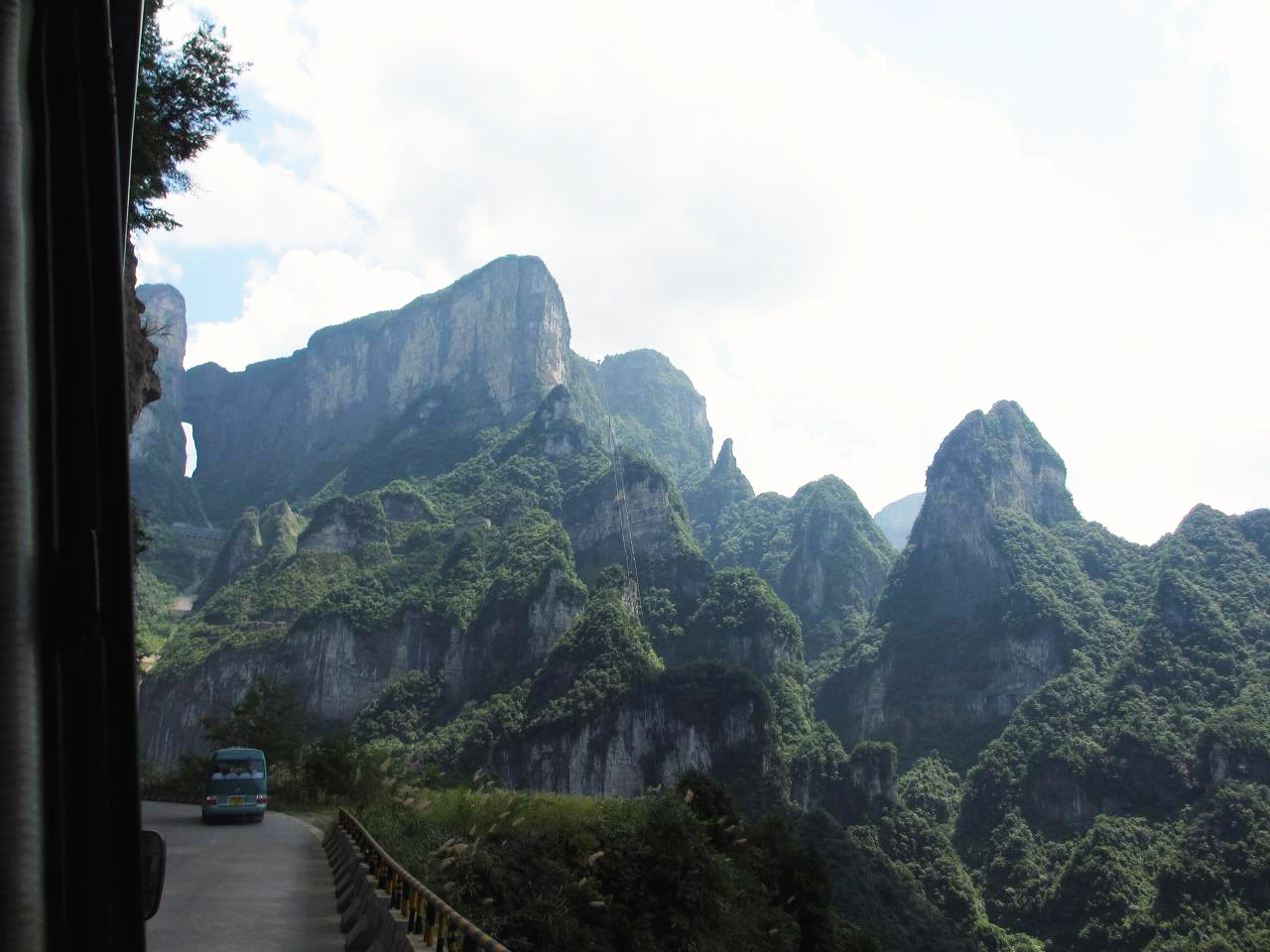 천문산에 올라가려면 버스를 타고 험준한 도로를 올라가야 하는데, 도로를 만들기 위해 수천 명의 죄수가 동원했다고 한다.