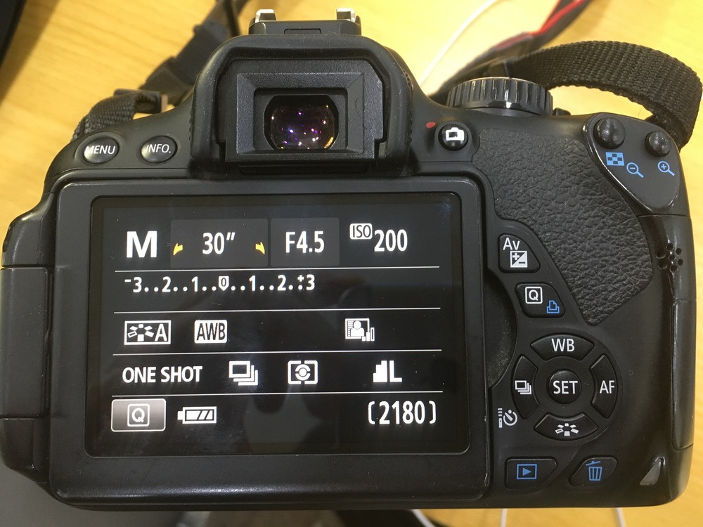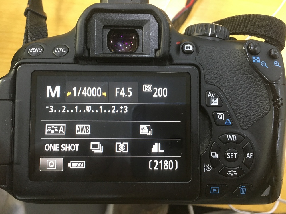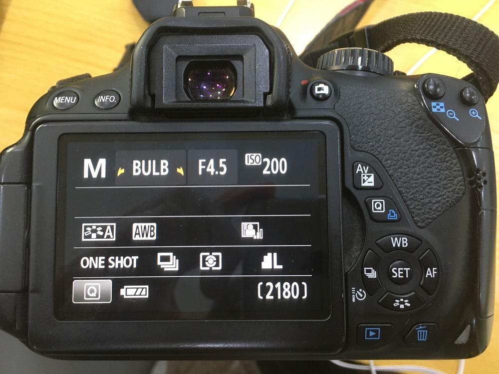 보급기종 중 하나인 캐논 650d 모델의 메뉴얼 모드 화면입니다. 화면상에 1/4000, 30”, BULB 라 표시된 부분들이 셔터스피드를 나타냅니다. 1/4000의 의미는 촬영시에 셔터막을 1/4000초 간 열어두겠다는 의미입니다. 아주 짧은 시간이지요. 30”의 의미는 촬영시에 셔터막을 30초간 열어두겠다는 의미입니다. 캐논 650d 모델은 짧게는 1/4000초, 길게는 30초까지 셔터스피드를 조절할 수 있습니다. BULB 모드는 셔터를 누르고 있는 동안은 셔터막이 열려있고, 셔터에서 손을 떼면 셔터막이 닫히는 모드입니다. 사용자가 임의로 셔터스피드를 조절할 수 있는 것이죠.