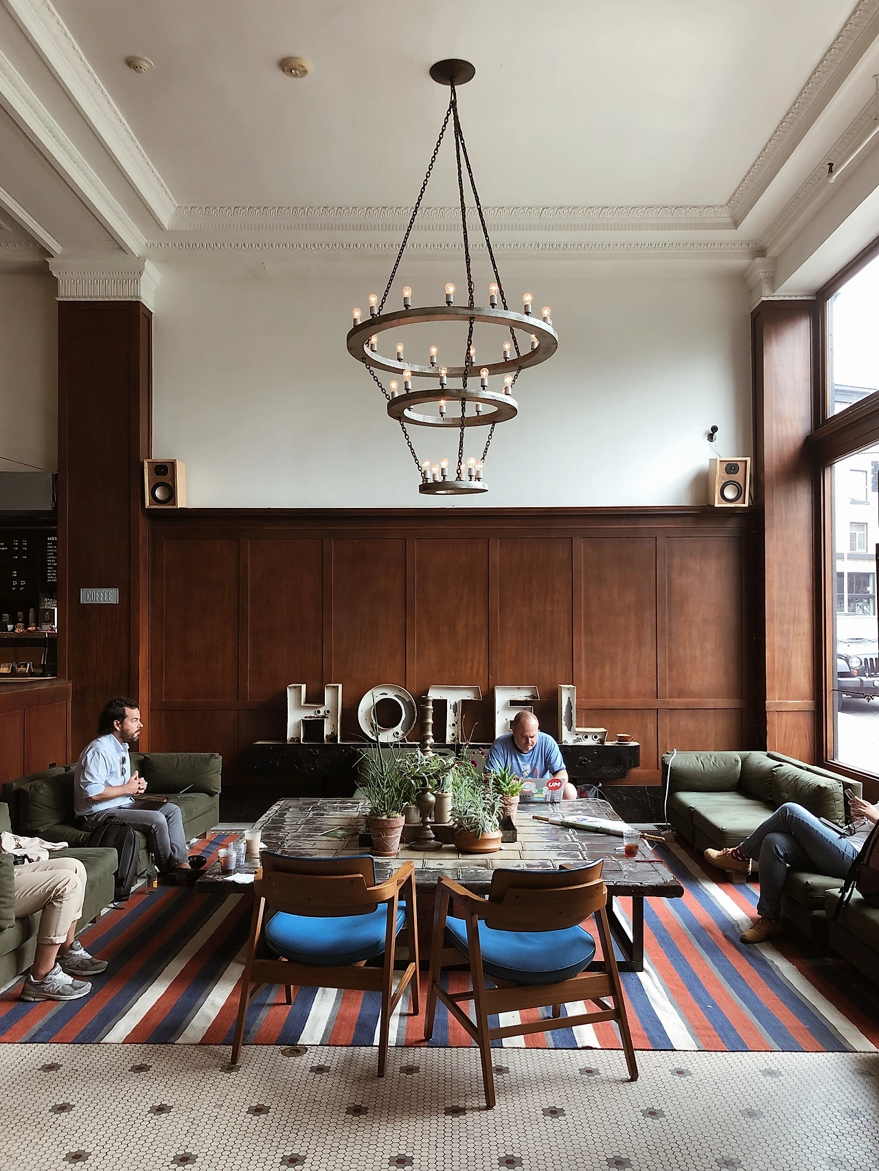 우리는 커피를 들고 스텀프 타운 커피샵과 이어져있는 에이스 호텔의 로비로 넘어왔다.