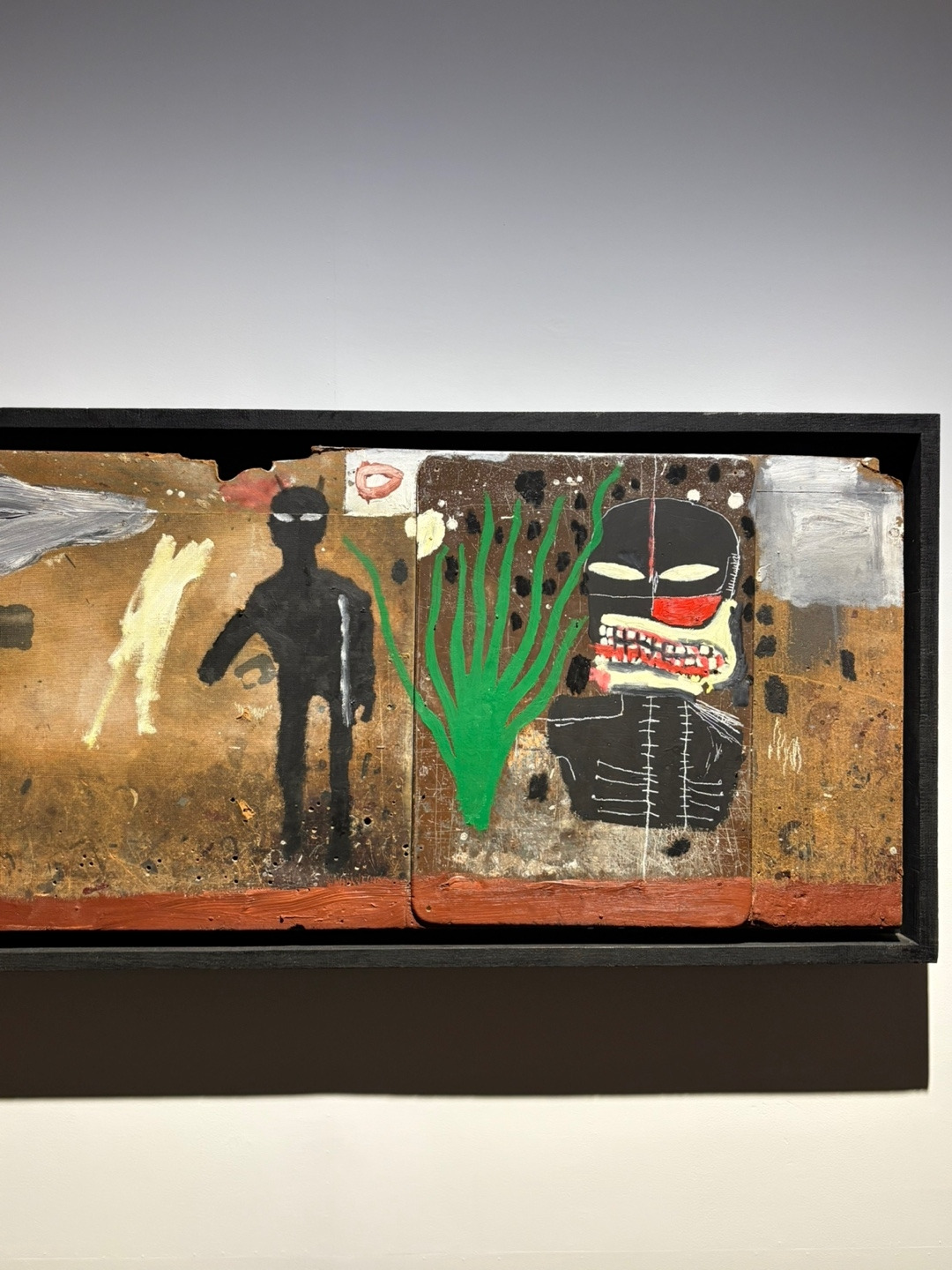 화면을 가득 채운 거친 색, 의미를 알 수 없는 상징과 단어들, 어린아이가 그린 듯한 짓궂은 캐릭터들까지. 한 그림 안에 여러 단어, 상징과 기호, 이미지의 파편들이 반복되고 흩어져 있다. '음, 이건 무슨 의미일까?' 왠지 모를 압도감과 함께 혼란스러운 마음이 들었다. 결국 오디오 가이드를 결제하고, 다시 작품을 천천히 뜯어보기 시작했다.