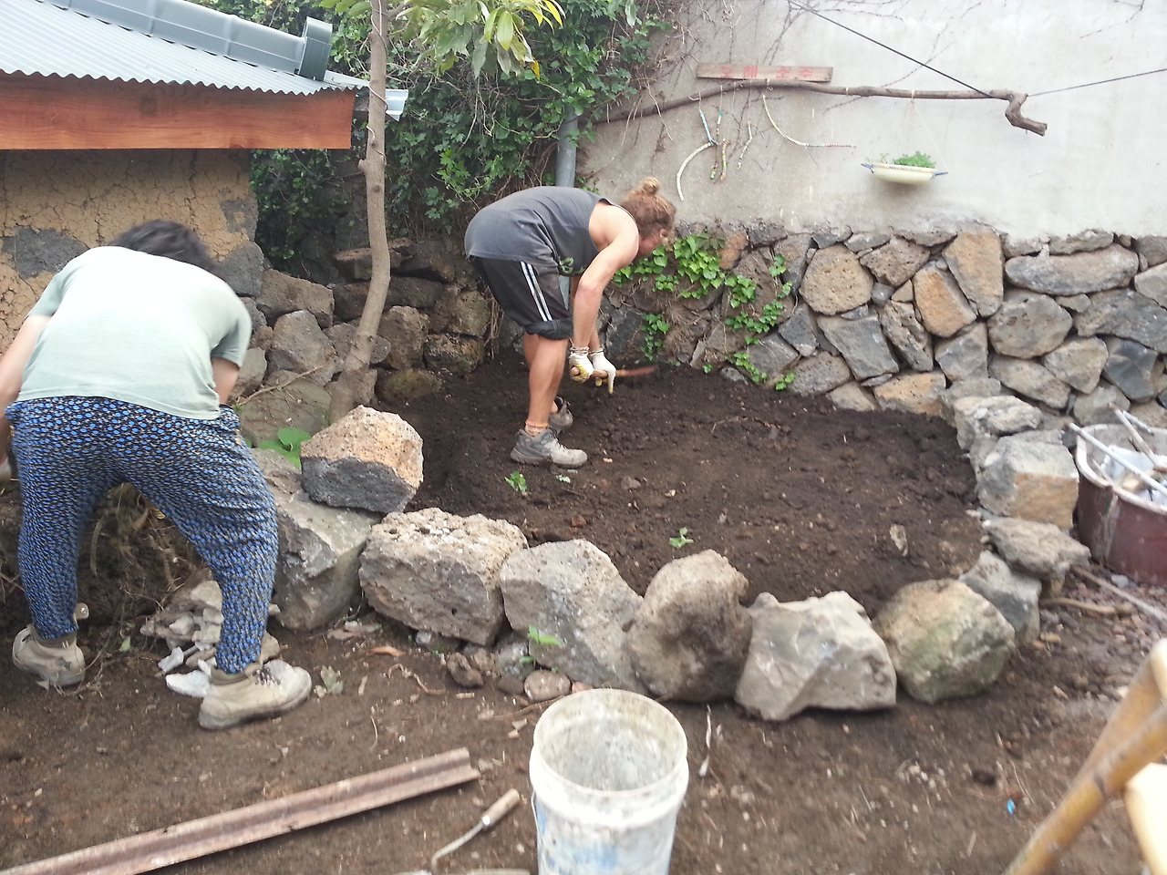 공사를 하는 내내 나는 어서 텃밭을 가꾸고 싶은 마음으로 가득했고, 틈만 나면 J에게 텃밭 텃밭 노래를 불렀다. 하지만, 공사 자재들이 여기저기 놓여있고, 흙이며 돌이며 잔뜩 쌓여있어 당장 텃밭에 흙을 고르고 터를 만들기는 힘에 부쳤다. 그러던 어느 날, J의 호주 시절 친구 프란체스코가 놀러왔고, 우리 집에 머무는 동안 우리도 잠시 쉬어가면서 작은 일들을 처리하기로 했다. 그렇게 시작된 텃밭 만들기.
