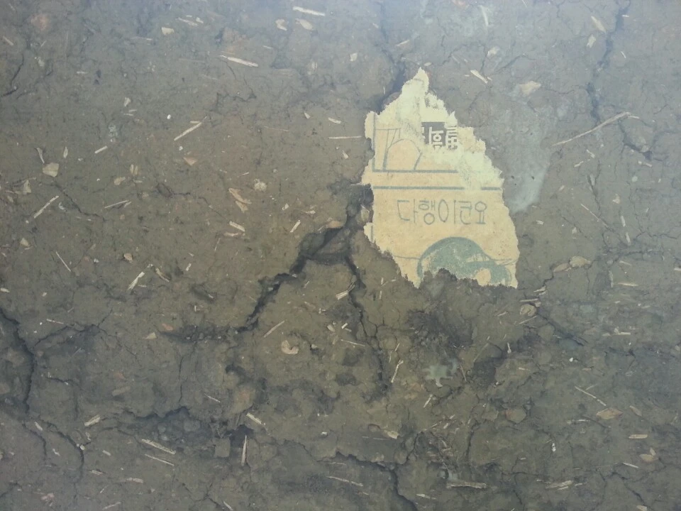 여기는 방 쪽의 벽인데, 어쩐 일로 벽지가 너무 잘 떨어져서 무슨 일인가... 했다. 기분 좋게 벽지를 떼어내는 찰나.. 벽지와 함께 벽에 발라져 있던 오래된 흙들이 후드득 떨어지는 것이었다. 아... 이게 뭐지?.. 음?..??... 아.. 우리 집이 돌로만 지어진 돌집이 아니라, 안에는 흙이 발라져 있는 흙집이기도 하구나.. 벽지를 뜯으면서 알게 되었다. 돌도 있고 시멘도 있고 흙도 있다. 하하