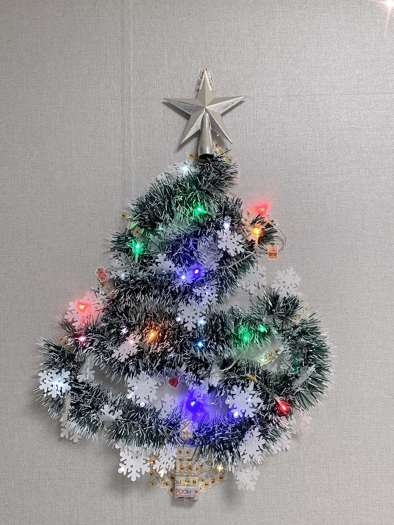 그런데 이게 웬걸. 불을 켜보니 촌스러운 4색이 열심히 자리를 빛냈다. 마스킹테이프로 고정한 모루는 시도 때도 없이 후드드 떨어지고, 머리가 무거운 별장식은 내 발등을 찍었다.