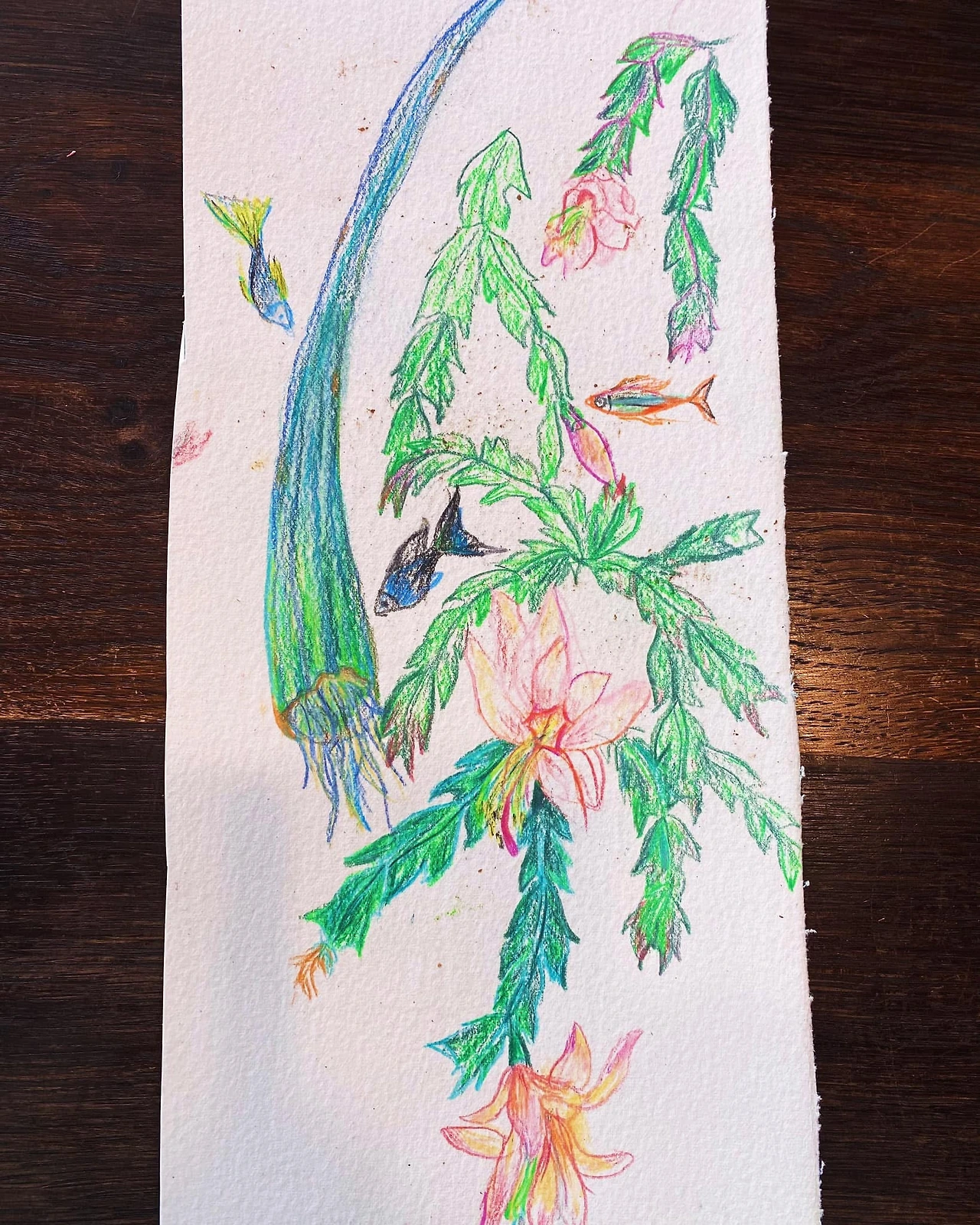 아래, 내 작은 어항 속 기적. 산도스지에 색연필. 숲