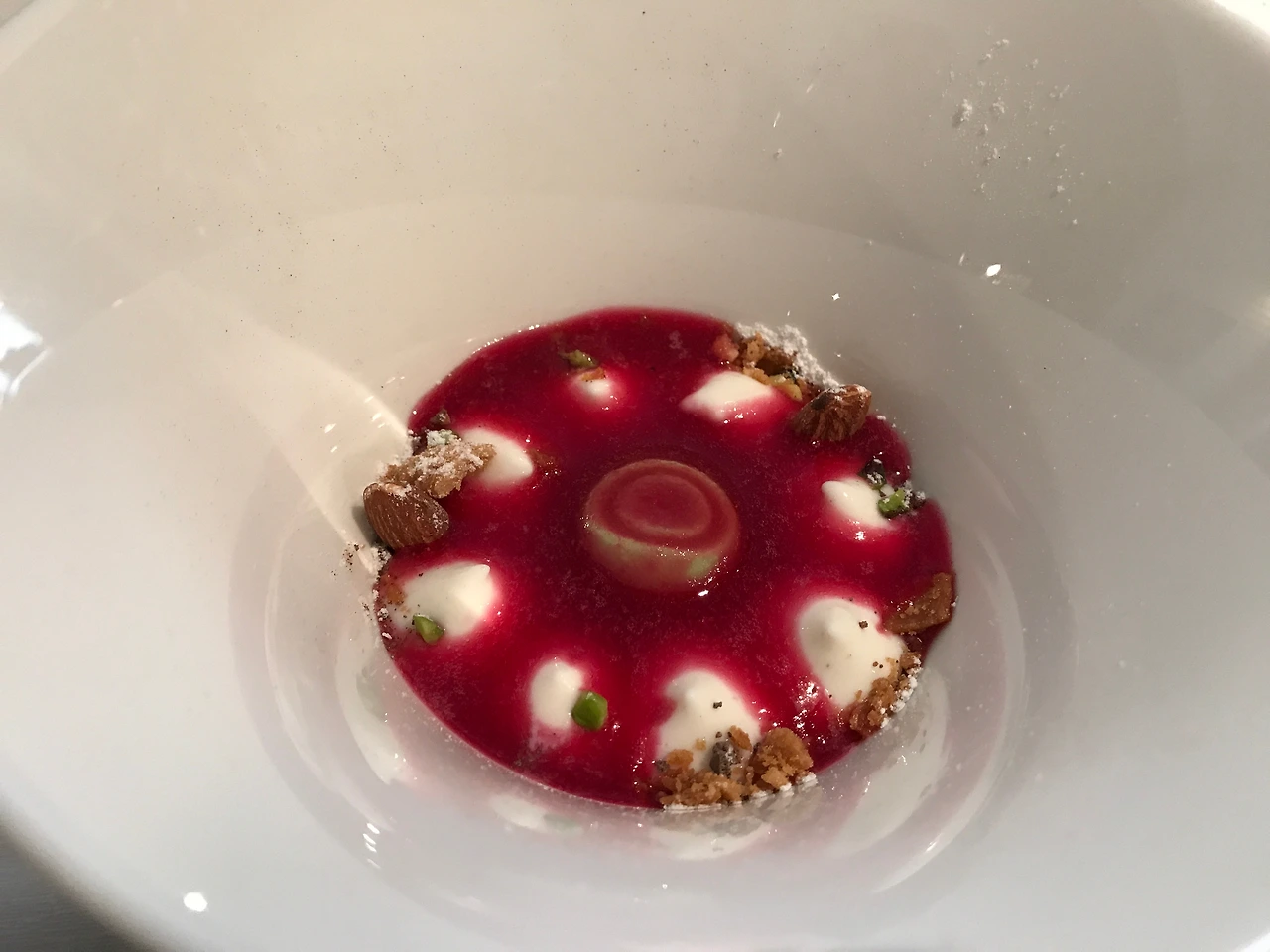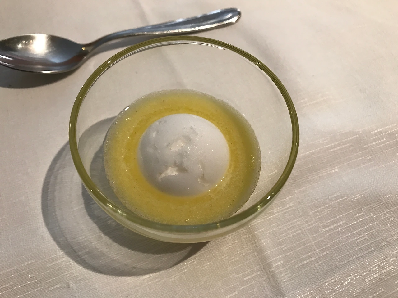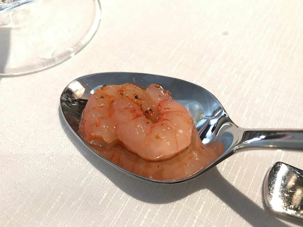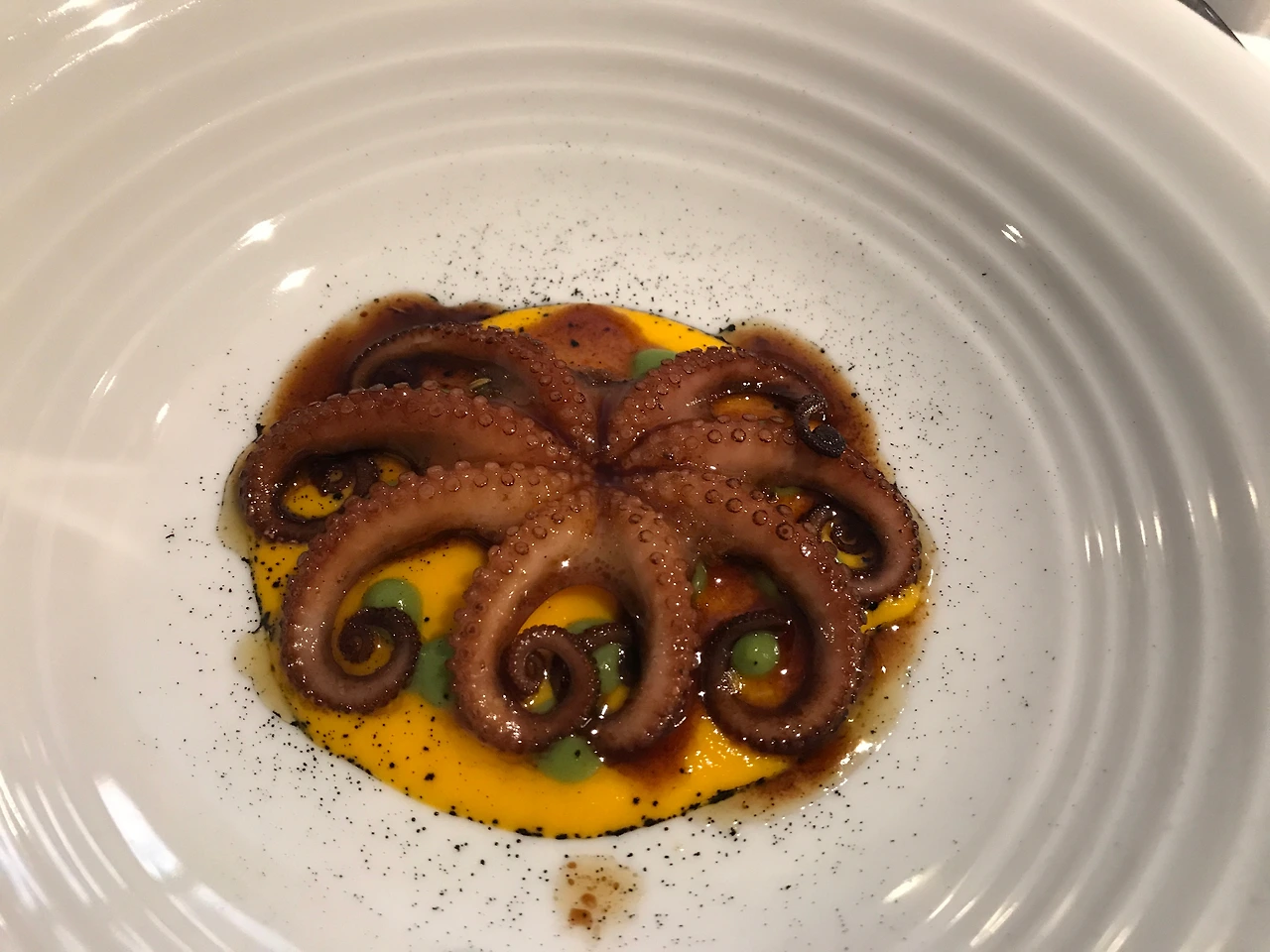 이다음에 등장한 요리 또한 해산물이다. 해산물에 가장 큰 강점을 가진 레스토랑 같다. 이 작은 문어는 우리에게 큰 감동을 주었다. 그 아래에 있는 알 수 없는 소스의 맛은 또 어떤가! 이 작은 레스토랑의 셰프는 영화 '라따뚜이'에 나오는 주인공 쥐처럼 요리에 있어서 타고난 감각이 있는 듯했다. 화려하지 않으면서도 묵묵히 감동을 전달하는 능력, 그 적절한 밸런스에서 내공이 느껴졌다.