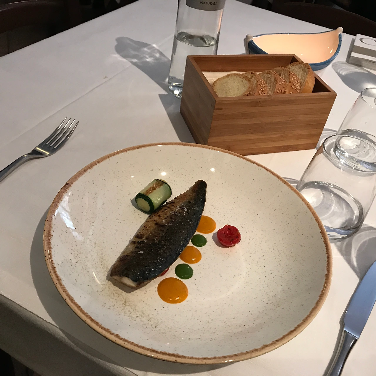 배가 부르면서도 여기까지 나온 모든 디쉬를 싹 비운 우리. 드디어 메인 요리인 고등어 구이가 등장했다. 고등어구이, 한국에서 참 흔한 요리라고 할 수 있다. 그래서 방심하고 한 입을 먹어서인지, 이 고등어구이도 정말 맛있었다. 겉은 바삭하고 속은 촉촉한 고등어와 곁들여진 파프리카와 알 수 없는 소스를 함께 입에 넣자 행복한 맛의 향연이 펼쳐졌다.