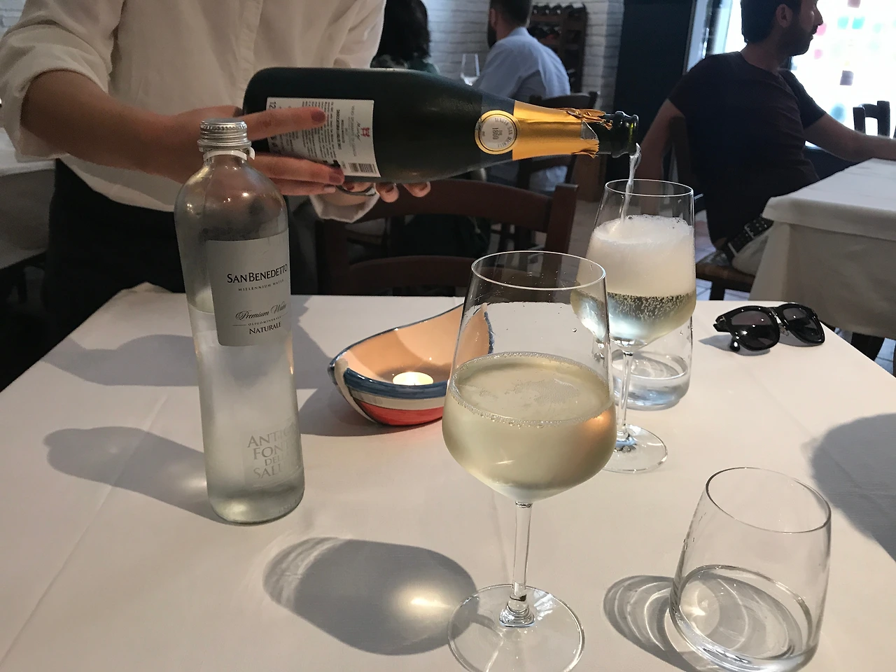 더운 날씨에 골목골목을 걸어 레스토랑을 찾아가며 몸이 달궈졌던 우리는 5유로씩 내고 bollicina 볼리치나 (스파클링 와인)를 한 잔씩 마셨다. 잠깐, 이탈리아에서 볼리치네, 스푸만테, 프리잔테 등의 단어에 혼란스러웠던 적이 있을 것이다. 나도 그랬다. 아니 이게 다 뭐람? 그런 의미에서 여기서 한 번 정리하고 가겠다.