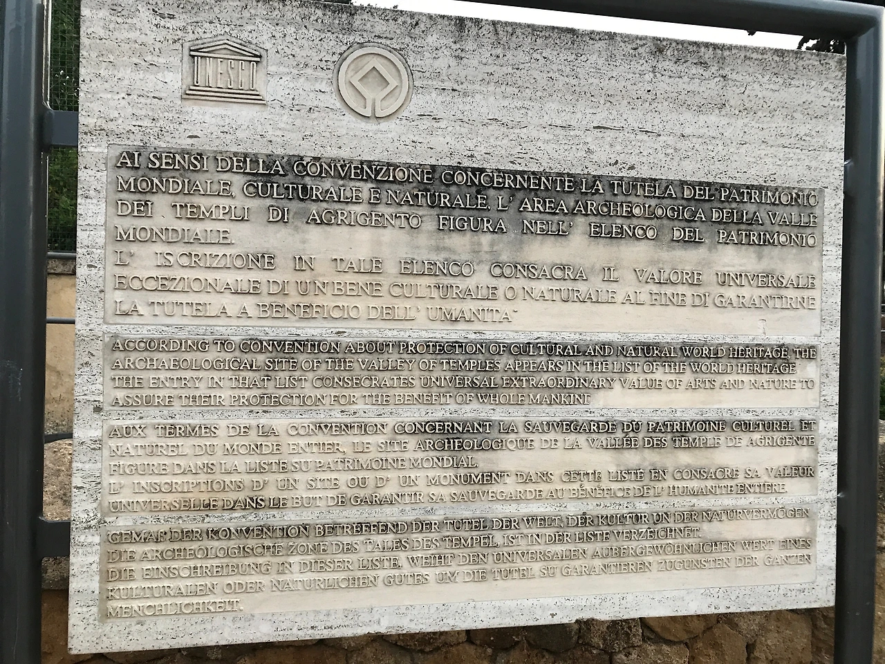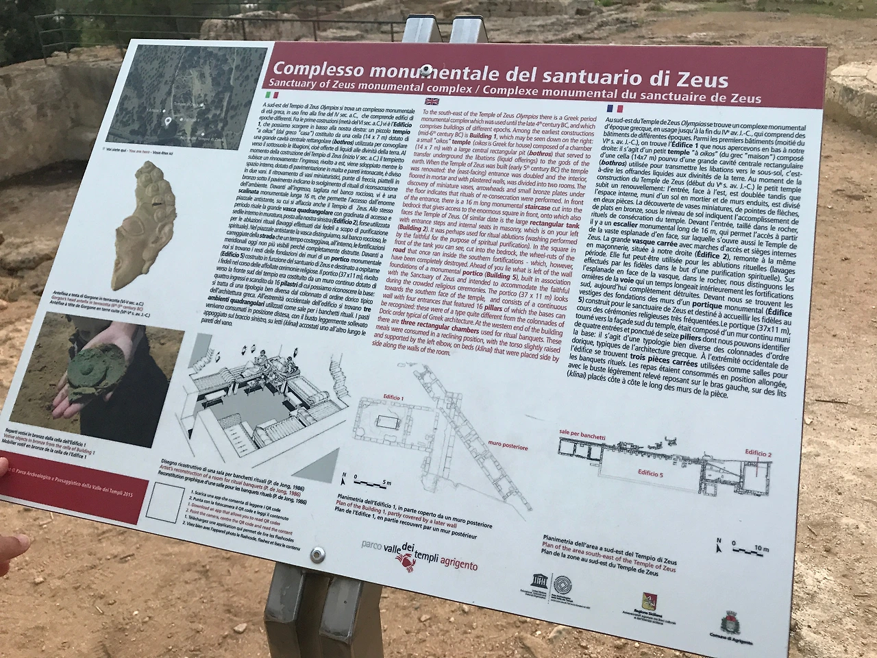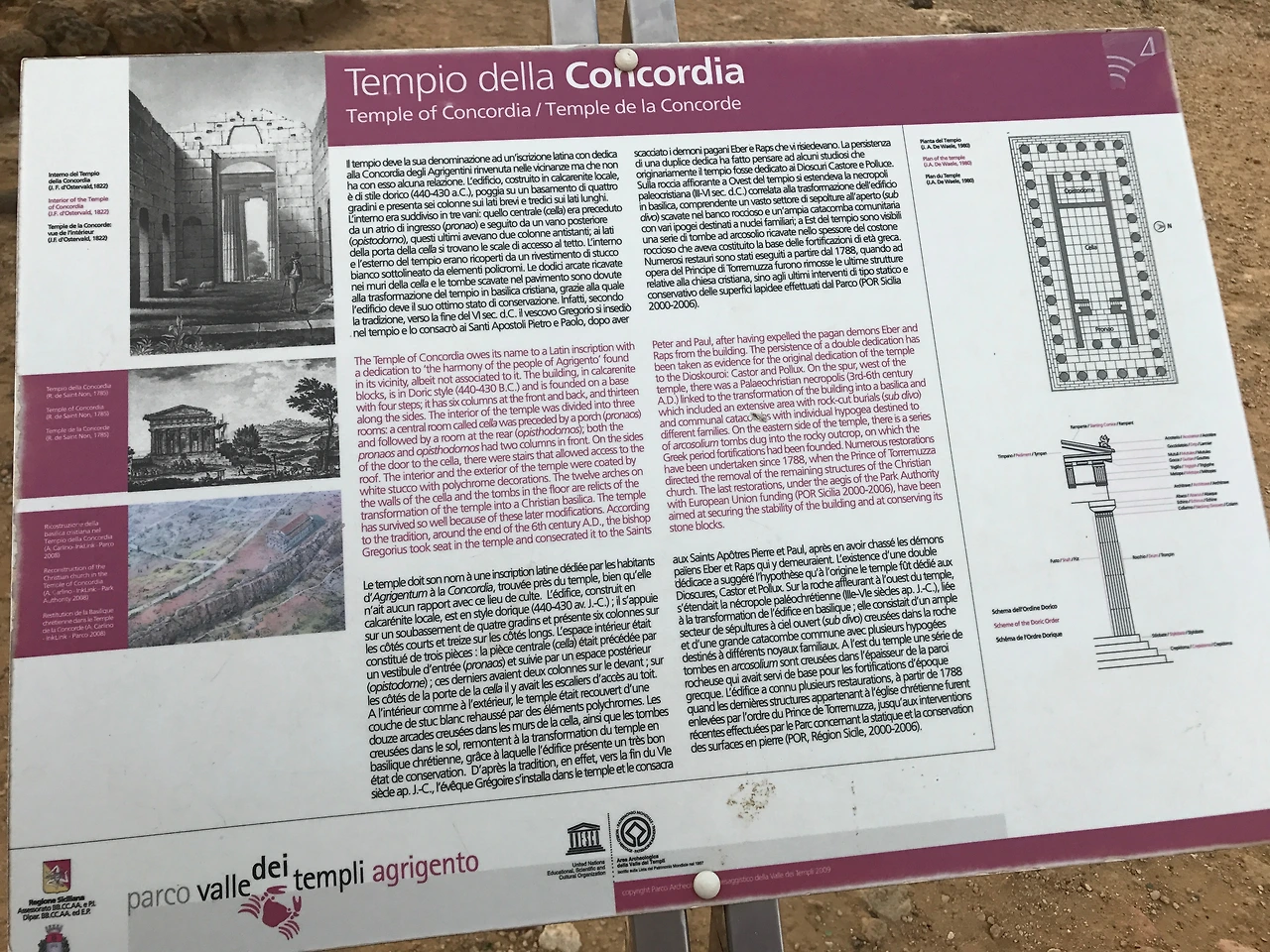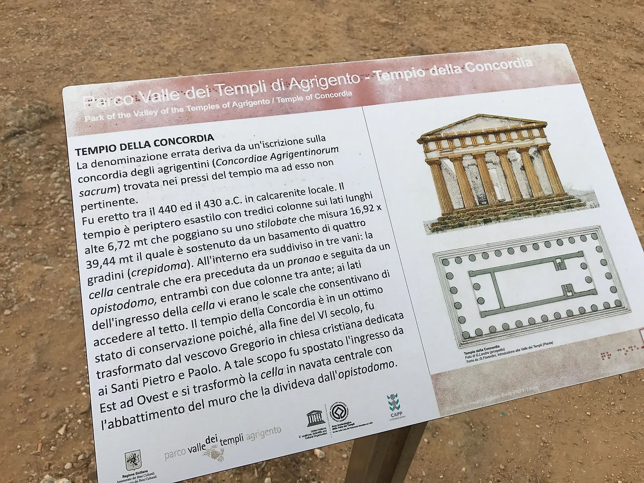 440-430 BC에 건축된 콩코르디아 신전은 13개의 기둥 컬럼으로 지탱되도록 도리아식으로 지어졌다. 콩코르디아 신전의 보존 상태는 보시다시피 매우 양호한데, 이는 6세기 후반에 성 베드로와 바울을 위한 교회로 사용하게 되었기 때문이다. 유네스코에서 사용하고 있는 로고가 이 신전에서 따온 이미지라고 하며, 이만큼 잘 보존된 신전은 그리스에서도 보기 드물다고 한다.