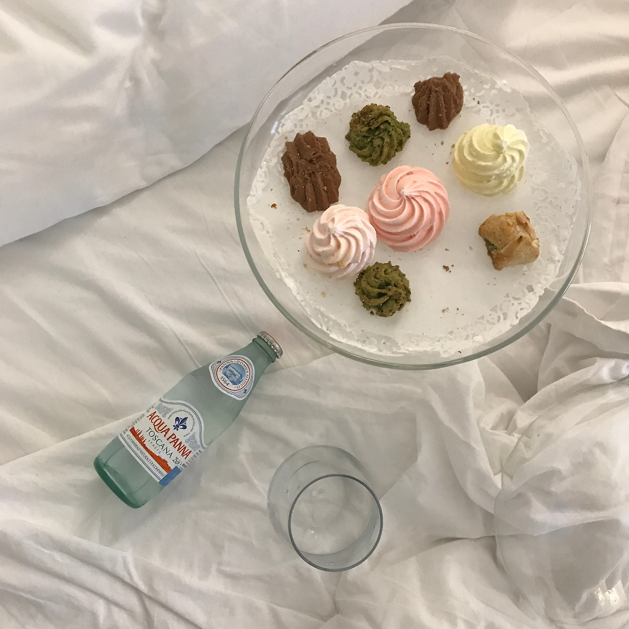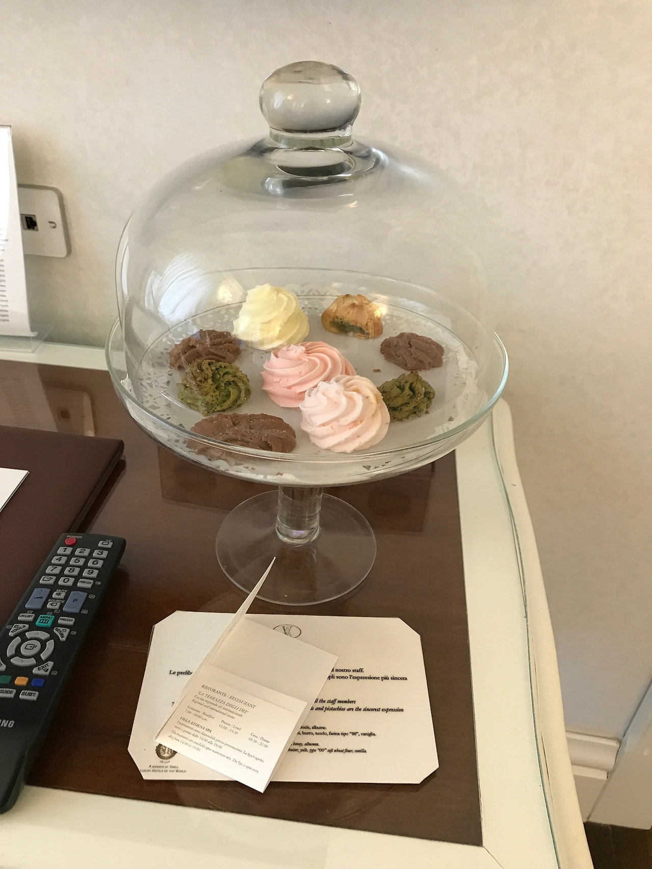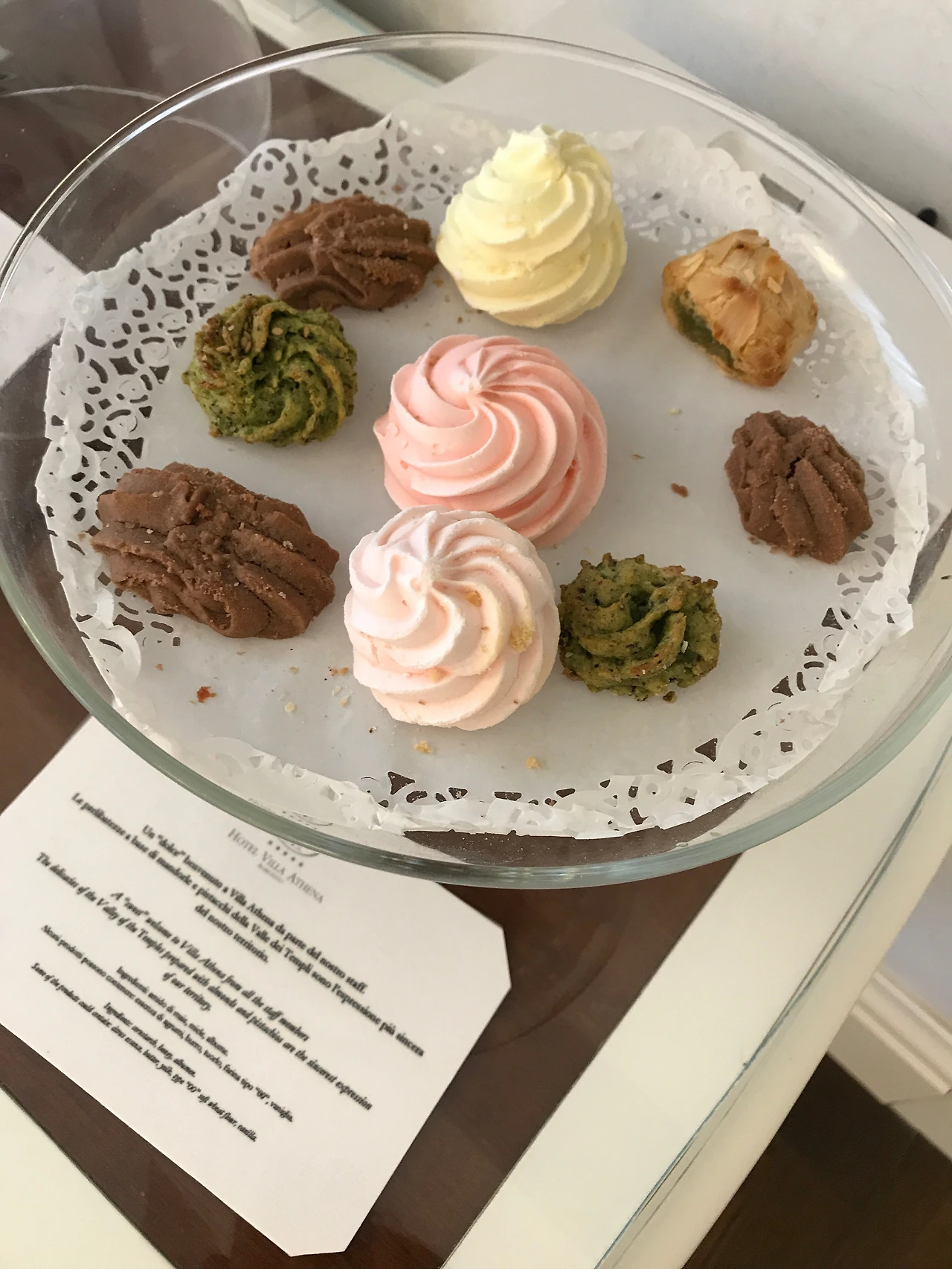 러블리하고 심플하면서도 고풍스러운 부분이 있는 객실. 테이블에 알록달록한 시칠리아 전통 과자들이 마련되어 있다.