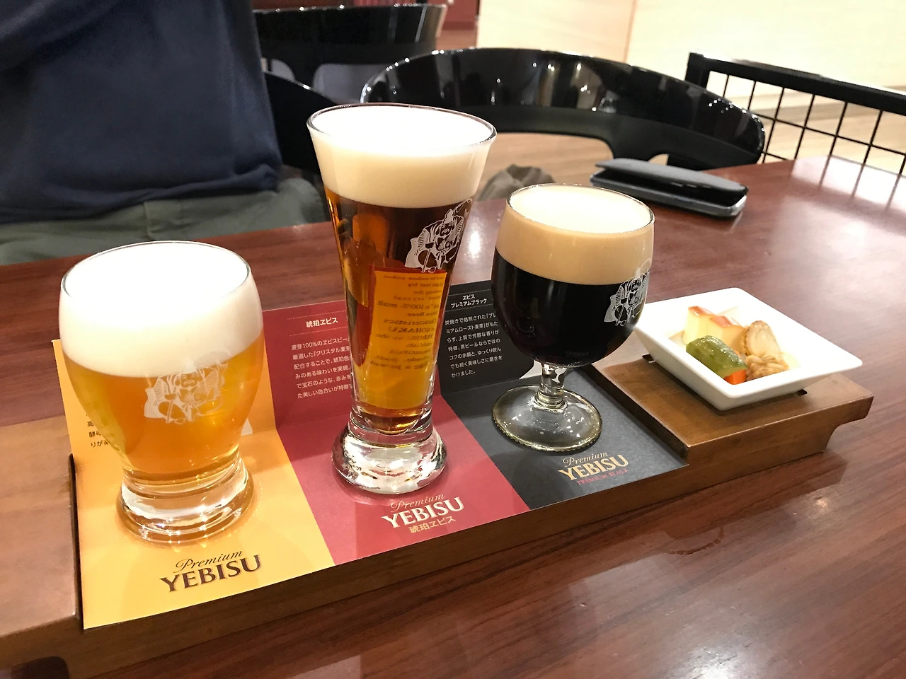 왼쪽부터 순서대로 (1) 오리지널 에비스 (2) 코하쿠 에비스 琥珀エビス (3) 에비스 프리미엄 블랙 エビスプレミアムブラック이다. 전부 각자의 방식으로 훌륭한 맛의 밸런스를 갖고 있다. 개인적으론 가운데 있는 코하쿠 에비스가 제일 감칠맛도 있고 깊이감도 있고 맛나다.
