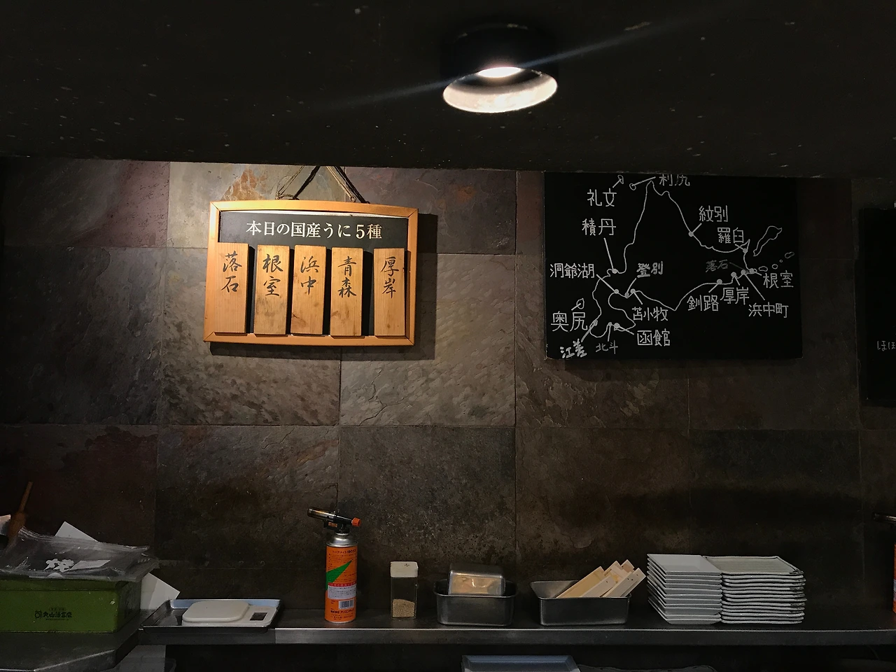 우니 산지를 그려둔 것. 그냥 먹어도 맛있지만 산지를 비교하면서 먹으니 좀 더 색다른 경험이 되었다.