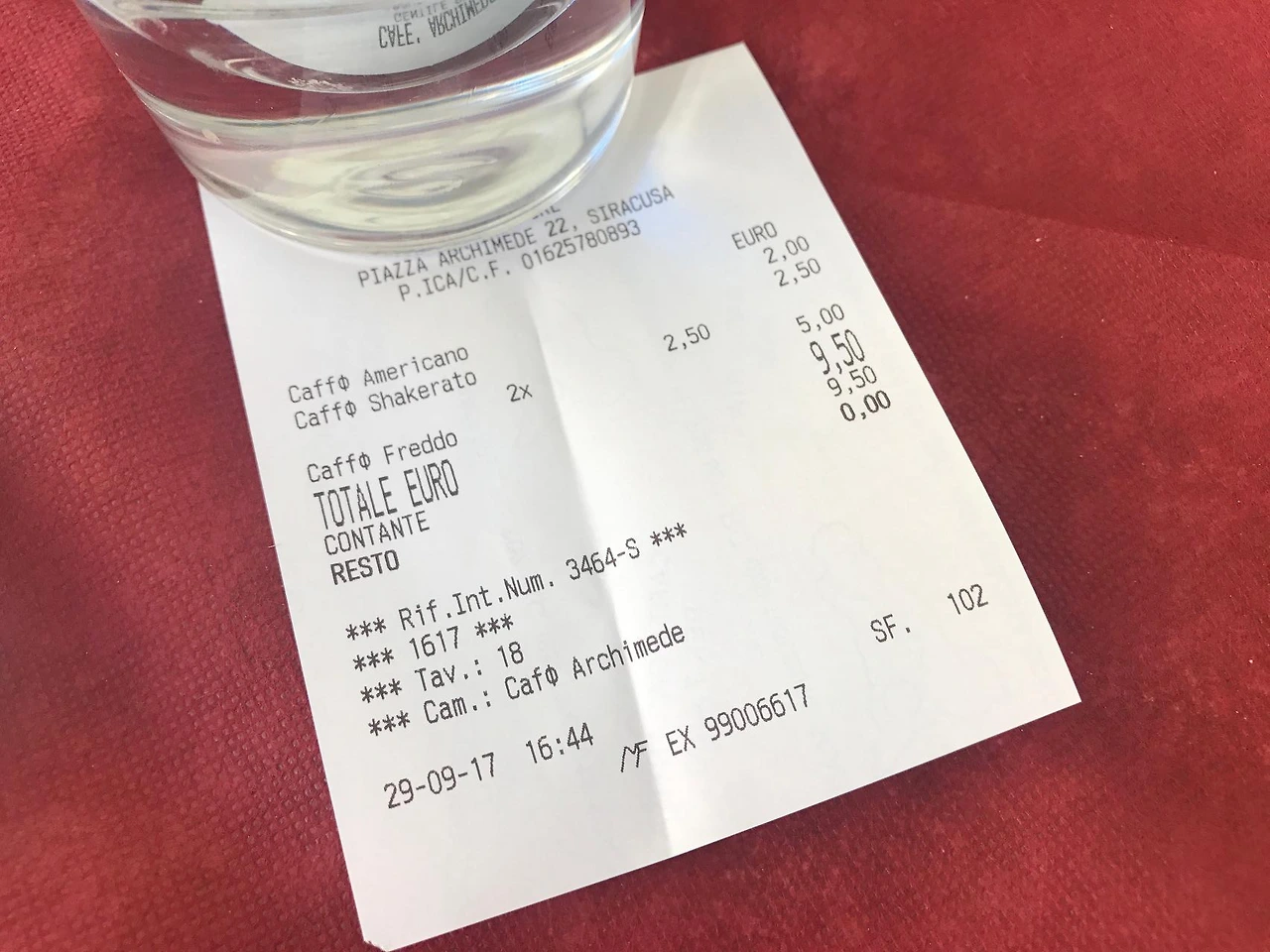 아기자기한 분수가 있는 Piazza Archimede(삐아짜 아르끼메데: 아르키메데스 광장)의 Café Archimede에서 우리는 잠시 목을 축였다. 이탈리아 사람들은 커피를 참 좋아하는지 곳곳에 작은 (카페 바: 커피와 술 둘 다를 파는 카페 겸 바. 종종 버스 티켓이나 담배 등 다른 것들도 판다.)들이 도포해있다.
