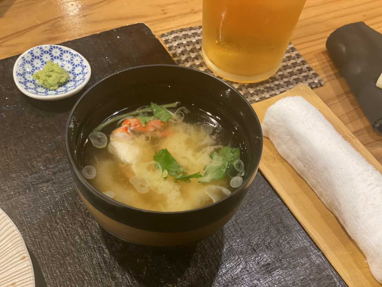 다이콘 오로시(무를 갈아서 절인 것)가 올라가서 더 시원하게 즐길 수 있는 맛. 야들야들한 잿방어(칸파치)는 역시 맛있다.