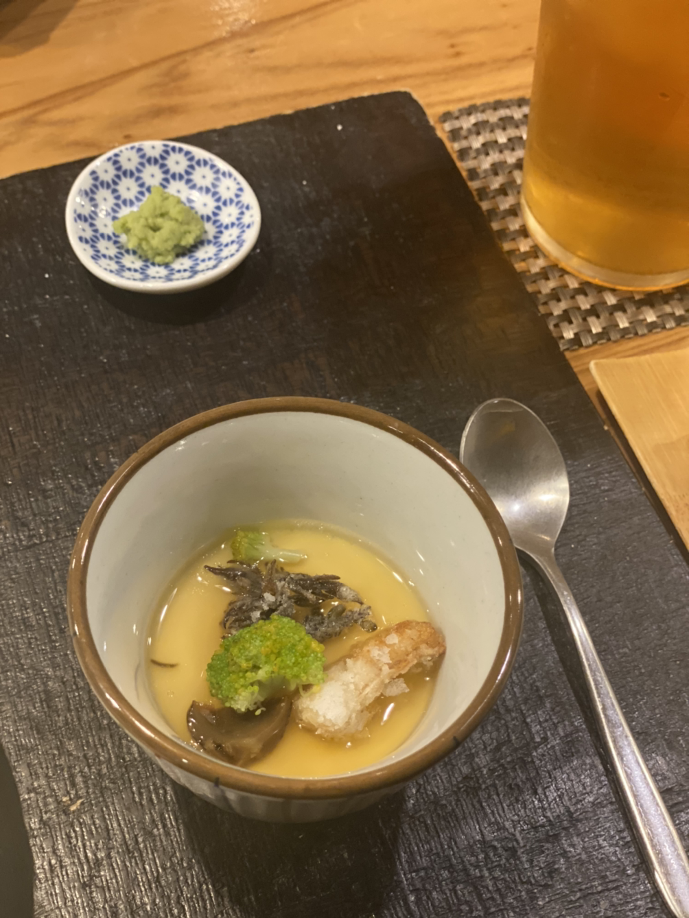 차완무시에 독특하게 브로콜리가 들어가 있다. 튀긴 톳은 특히 맛있었다.