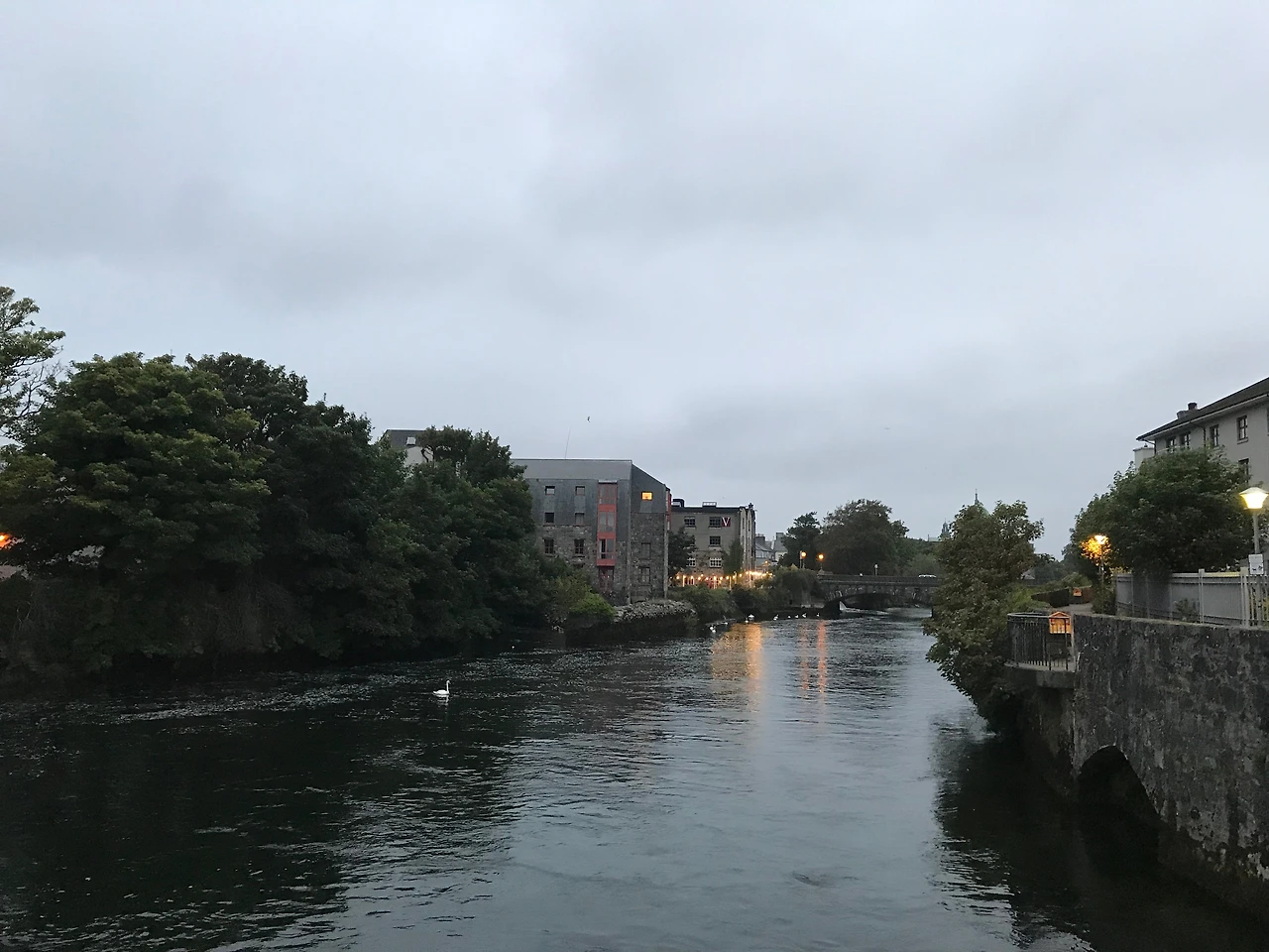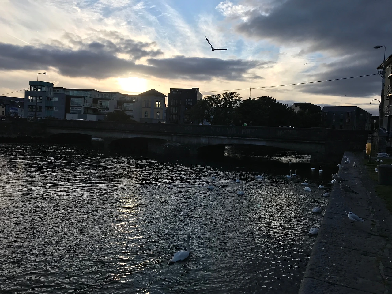 더블린에서 골웨이로 도착하자 마자, 코리브 강에 모인 백조 떼를 보고 깜짝 놀랐다.