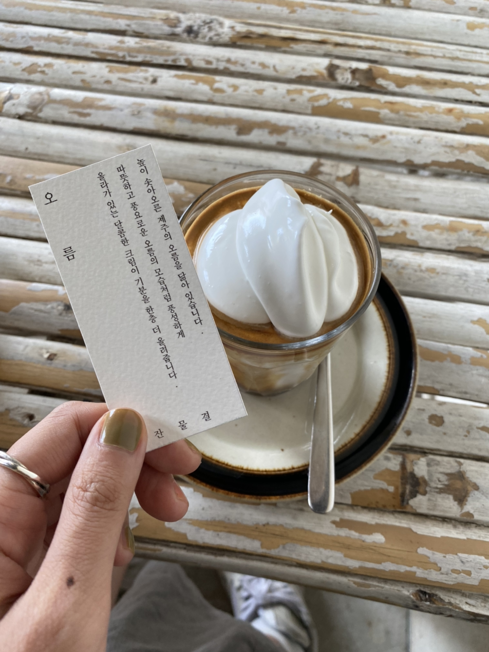 고소한 콜드 크림이 올라간 아인슈페너 같은 커피다. 제주의 오름을 닮았다고 해서 오름 커피.