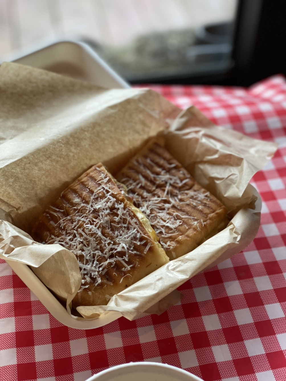 우리는 금능샌드 대표 치즈 파니니와 제주 감귤 뱅쇼를 테이크 아웃해왔다. 뭘 골라도 맛있으니 뭐!