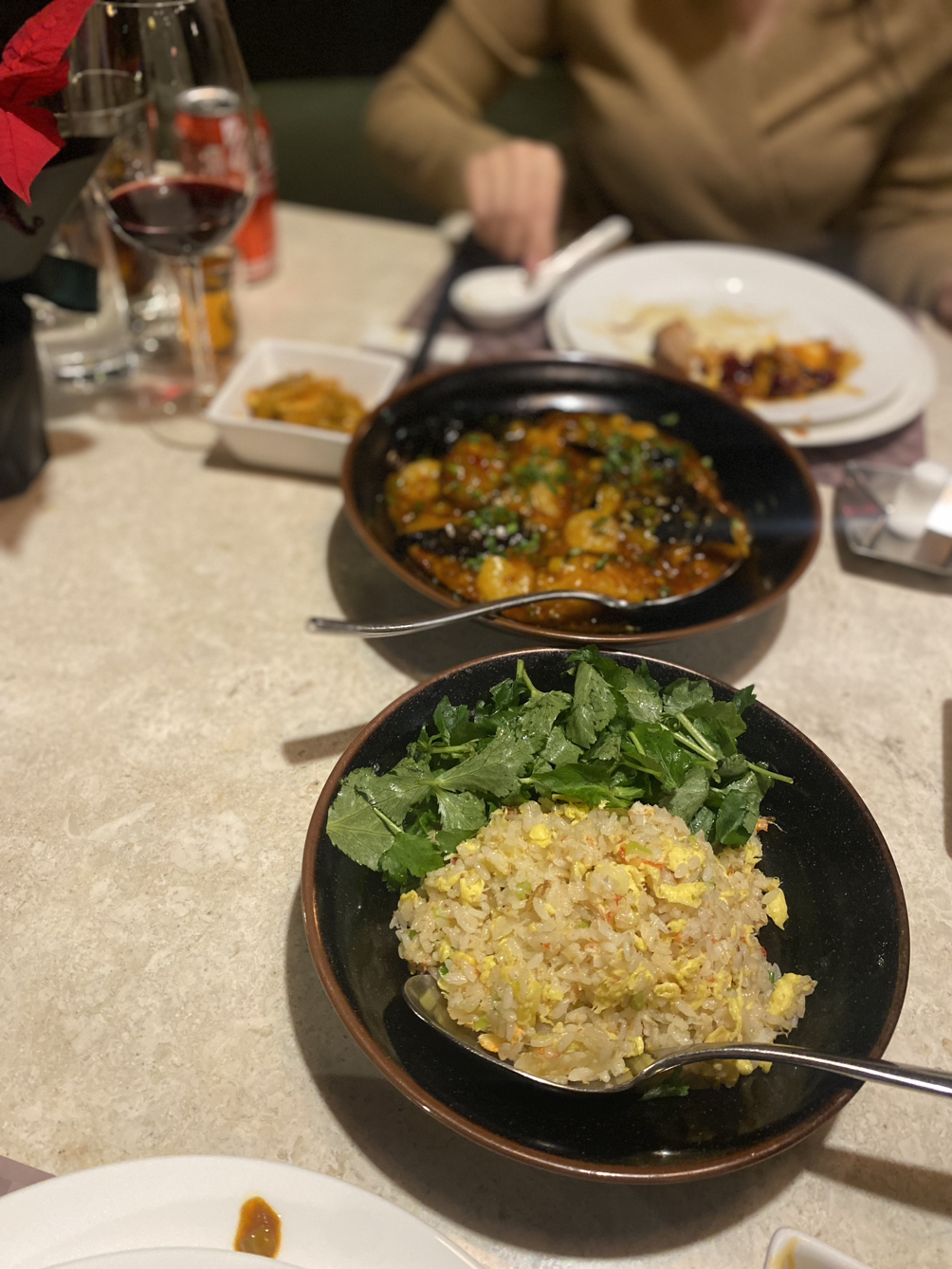 게살 볶음밥이랑 가지요리. 의외로 그렇게까지 맵지는 않았다.