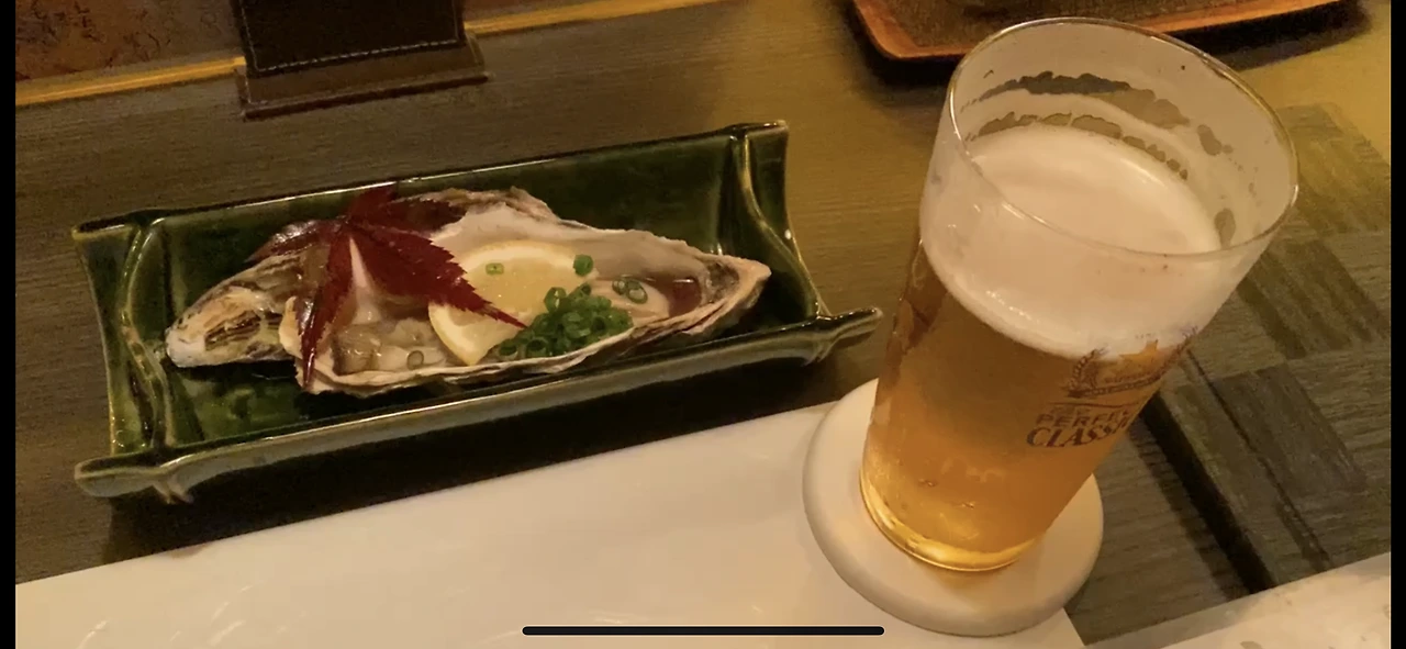 일단 삿포로 클래식 生ビール(나마비루, 생맥주)와 굴을 시켰다. 굴은 한 개에 480엔.