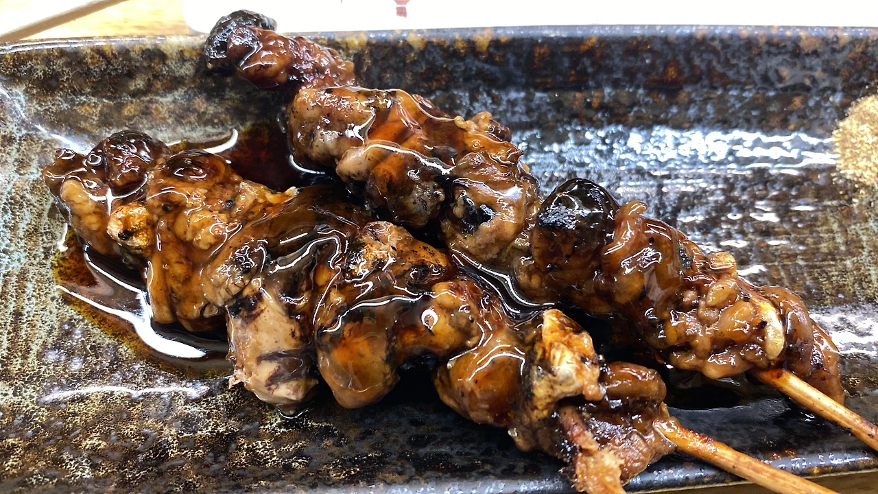 다음은 うなぎ肝焼き(우나기키모야끼. 우나기 간 구이)를 시켜봤다. 360엔. 장어덮밥 소스 같은 달달 짭조름한 양념에 고소한 간 맛이 잘 어울린다.