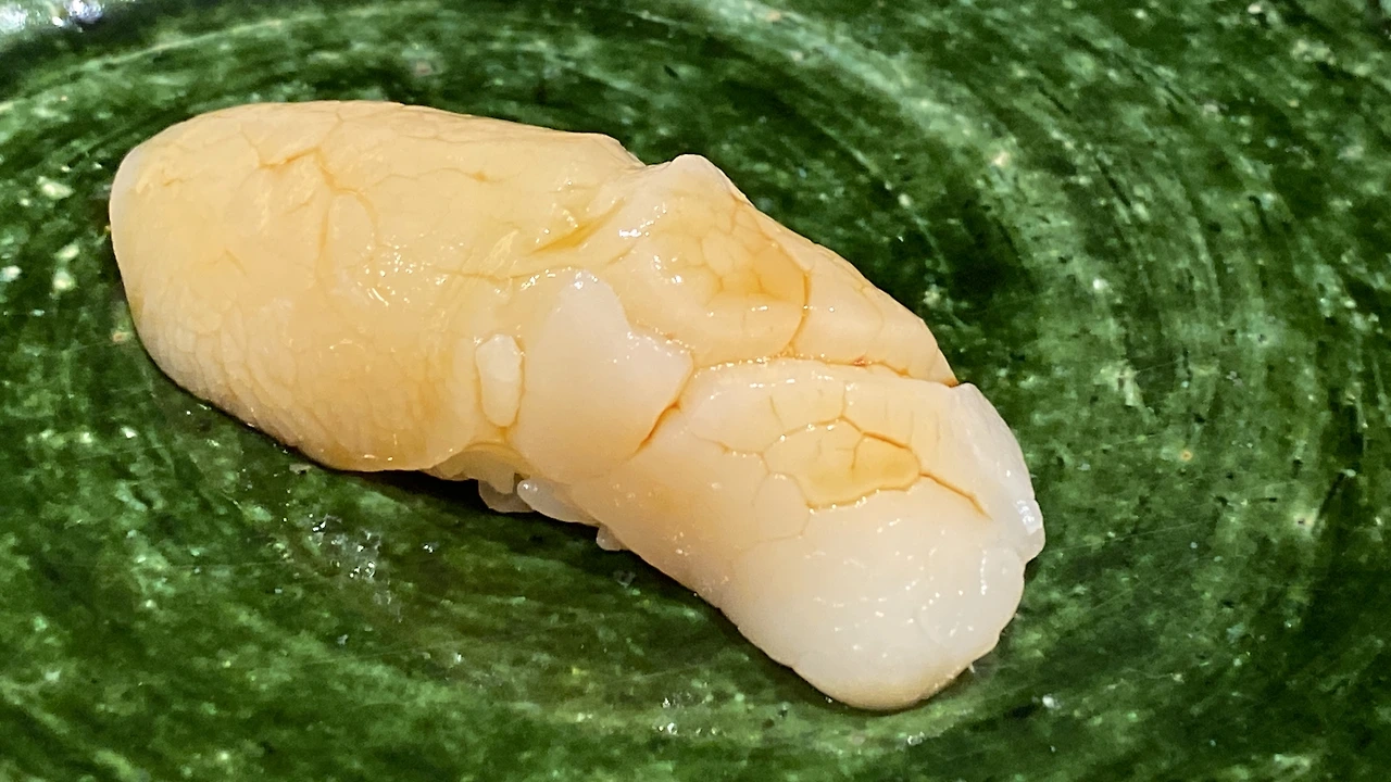 ホッキ貝(홋키가이. 북방대합). 조개가 아닌 거 같은 맛. 쫄깃하게 씹는 맛과 바다향.