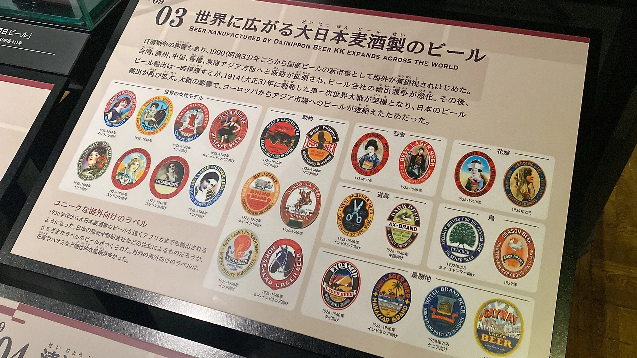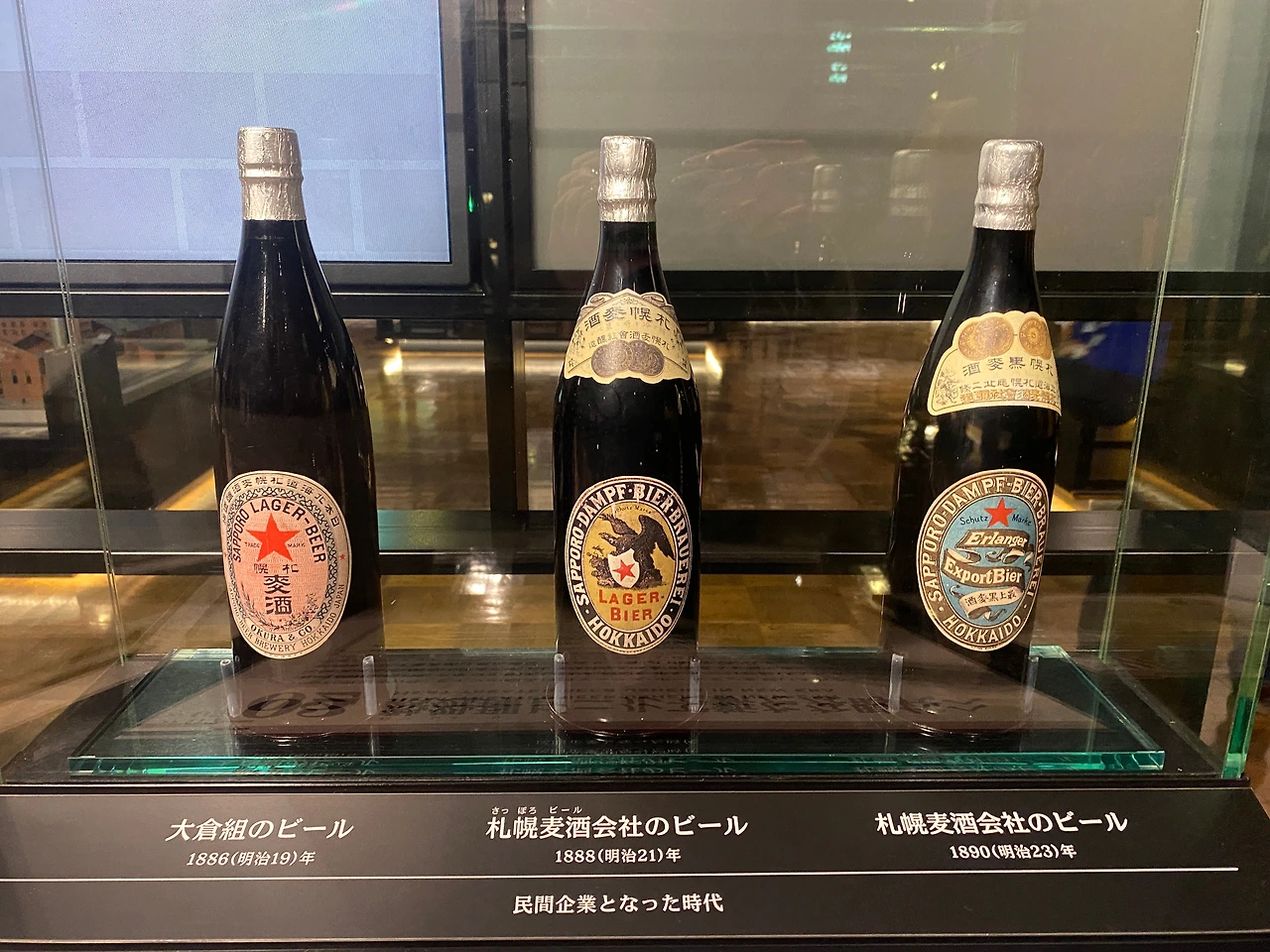 삿포로 맥주 라벨의 변천사. 이때만 해도 맥주용 유리병을 따로 생산하기 어려웠다고.