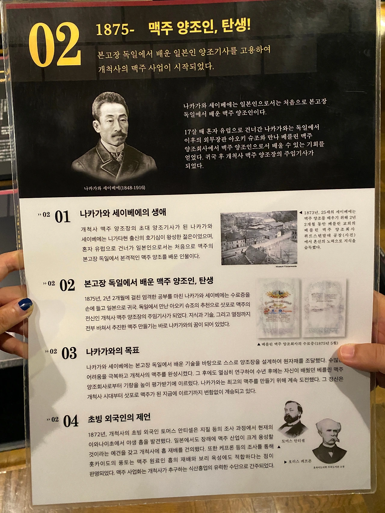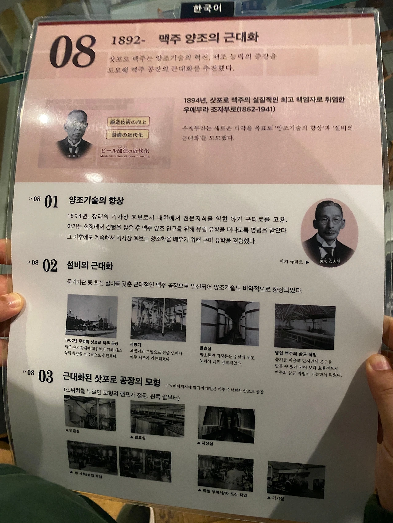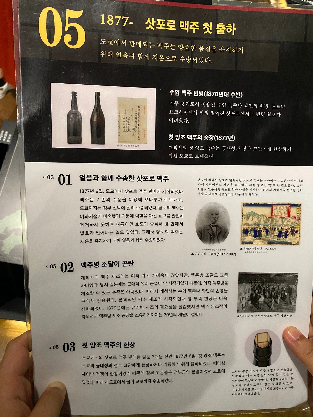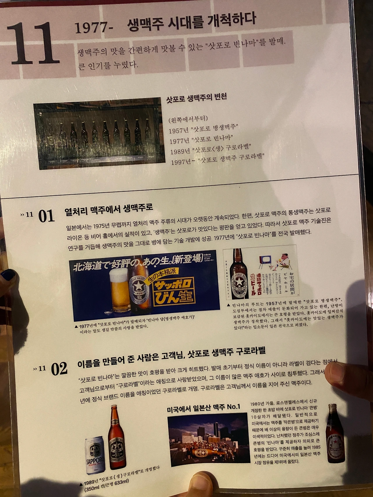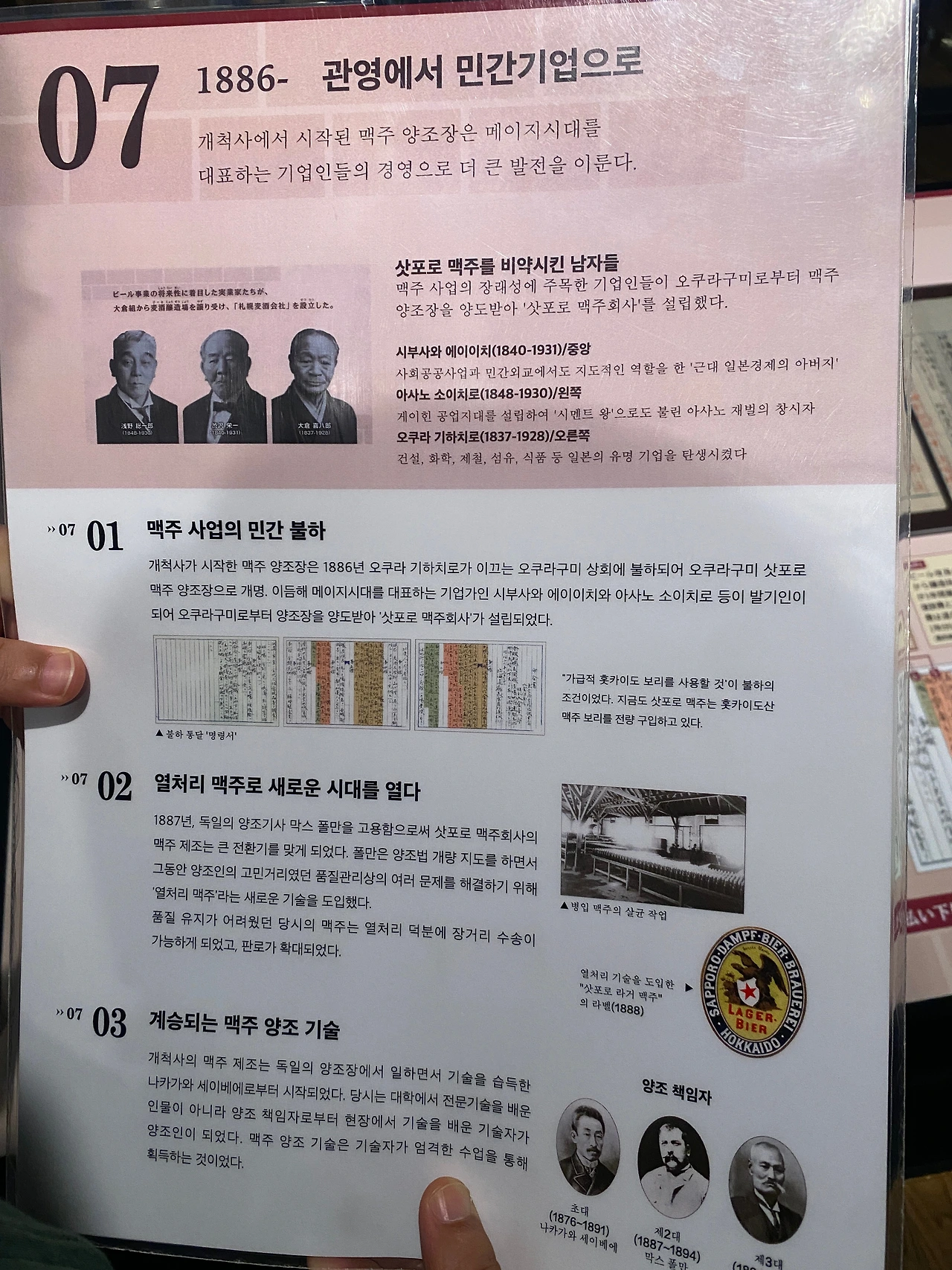 아래는 맥주 시음을 다 한 후 삿포로 맥주의 역사와 설명을 보고 찍은 것이다. 미리 읽어둬도 좋을 내용.